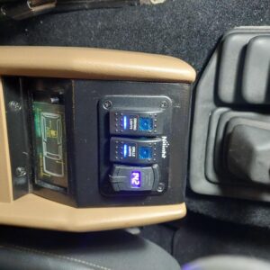 I added a 12-volt outlet / USB charging station in the rear of the Bronco II so Joseph could charge anything that he might be carrying or storing back there.
