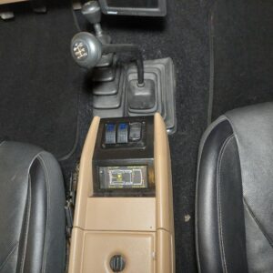 The worn-out front seats were replaced with power leather bucket seats from a Ford Fusion. I was able to mount them buy making spacers out of 1.5-inch square tubing to go between the seats floor mounts and the Bronco II’s floor. I then added an auxiliary fuse block and ran power to each of the seats.