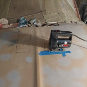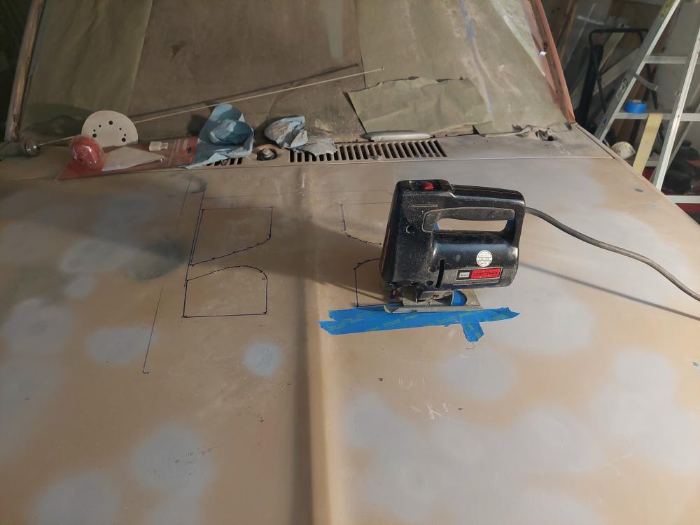 I made the scoop functional by cutting an opening in the hood under the scoop. Since this 2.8L V6 has an open element air cleaner on it, the scoop would actually function the way a scoop is supposed to a provide fresh cooler air to the intake.