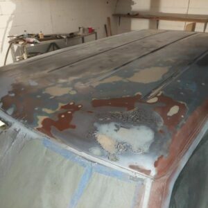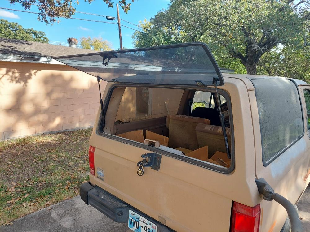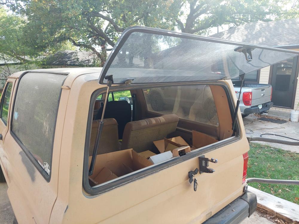 Next was sanding down the bad areas in the paint and painting the Bronco II black. I swore I would never paint a vehicle black because black shows every flaw in the body, but Laura insisted that black was Joseph’s favorite color. We also didn’t want to spend a lot of money on a paint job since this was his first car and he’s a new driver. The Bronco II was stripped down to a bare shell and even the interior was gutted.