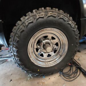 The original tires were a 195/75/15 (26.5″ x 7.7″ x 15″) tire. I chose to go with a 235/75/15 (28.9″ x 9.3″ x 15″) Americus Rugged M/T. Most people building one of these vehicles and adding some lift would have strived for a 31-inch tire. I chose a 29-inch tire because I wanted to retain the XLS flares. Any larger tire would have rubbed against them.