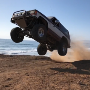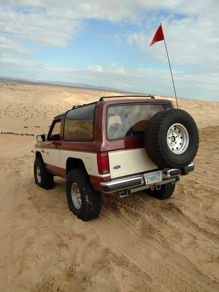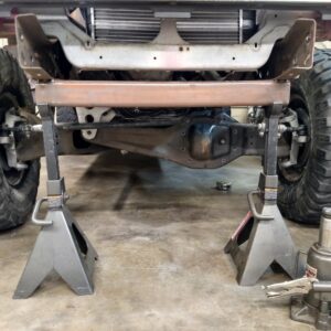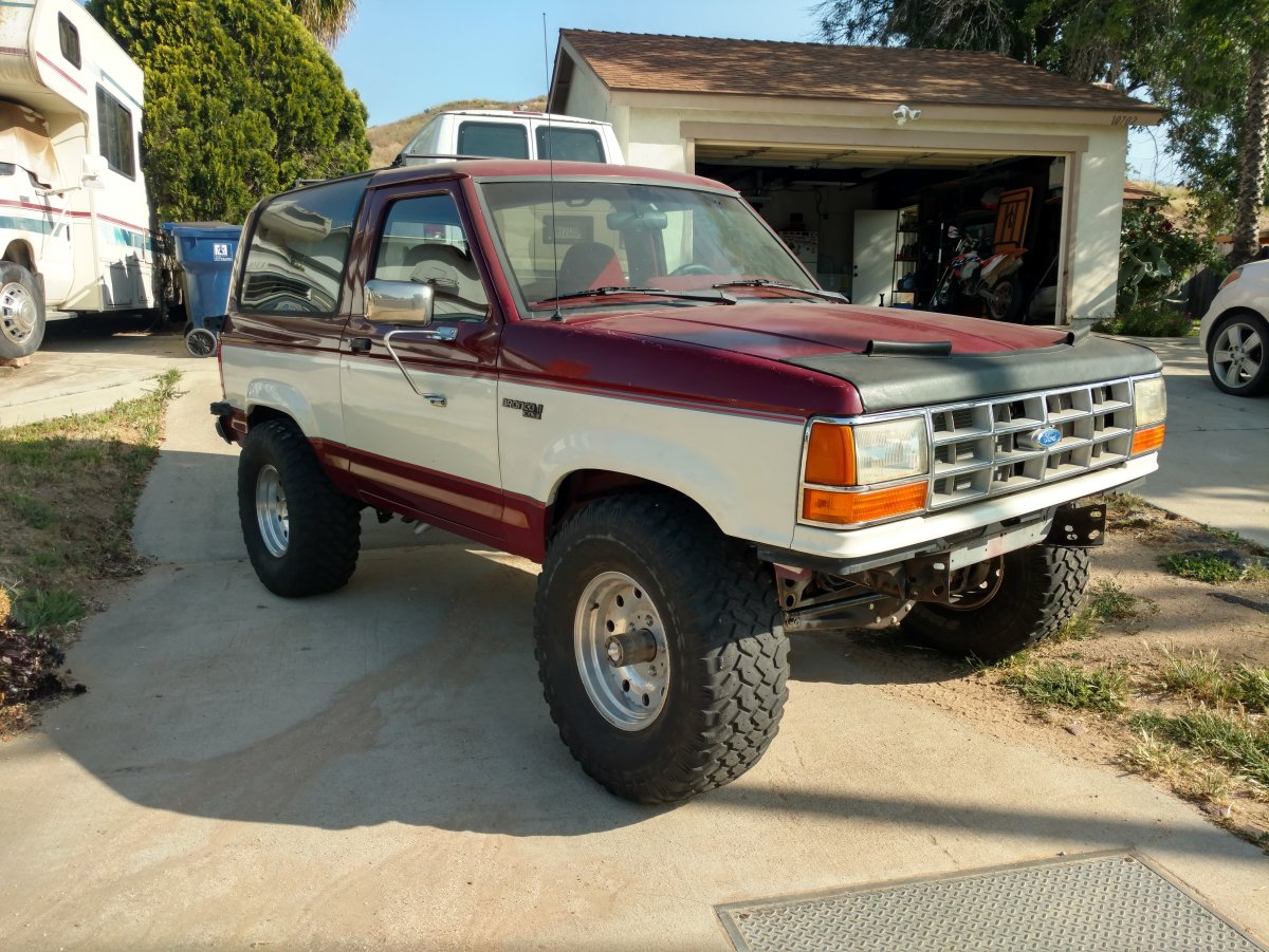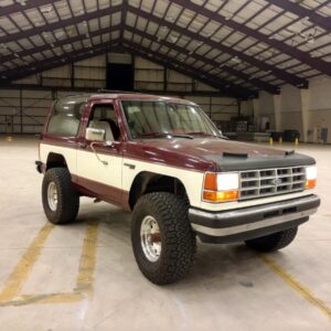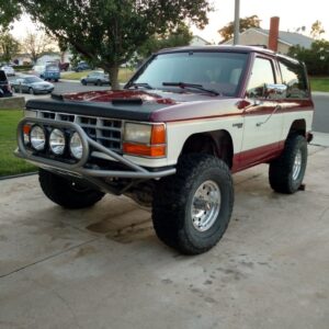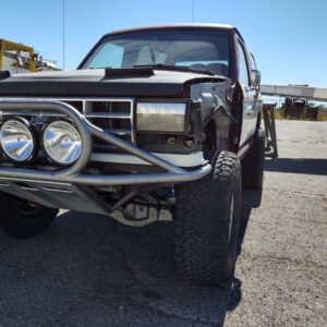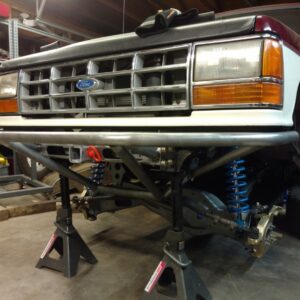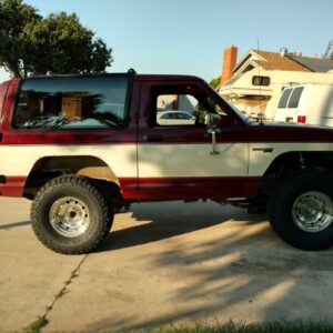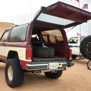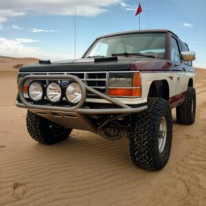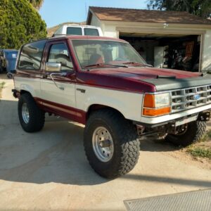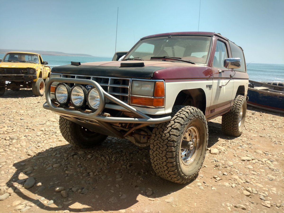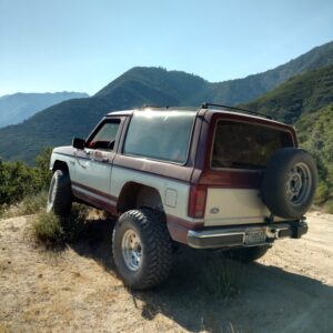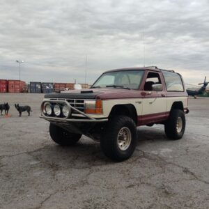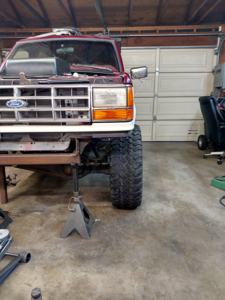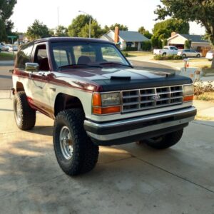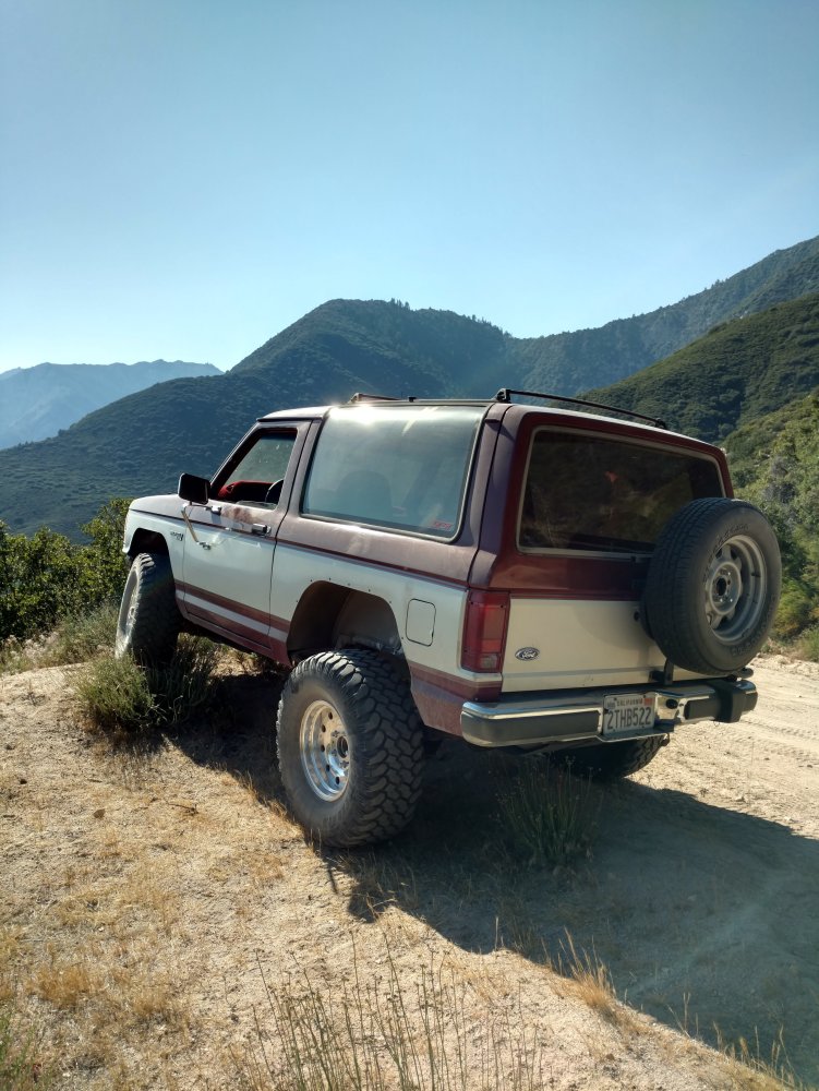 After purchasing the Bronco II the stock 140 horsepower 2.9L engine was replaced with a stock 160 horsepower 4.0L OHV engine, and then later upgraded to 207 horsepower 4.0L SOHC engine. The stock Dana 28 TTB front axle assembly was replaced with a larger Dana 35 TTB assembly that has been upgraded with Dana 44 steering knuckles and manual locking hubs.