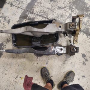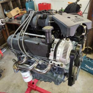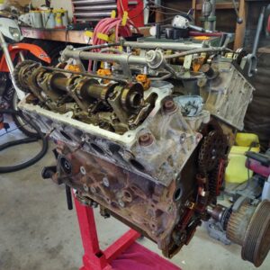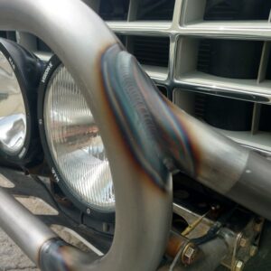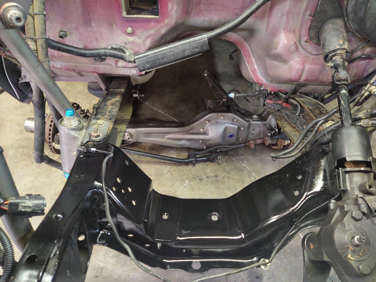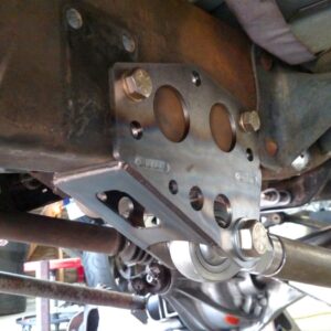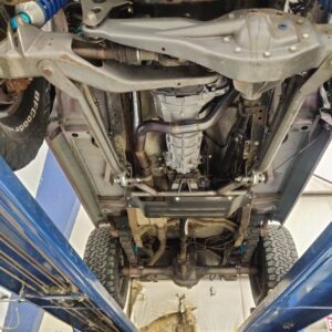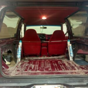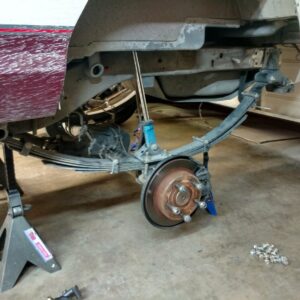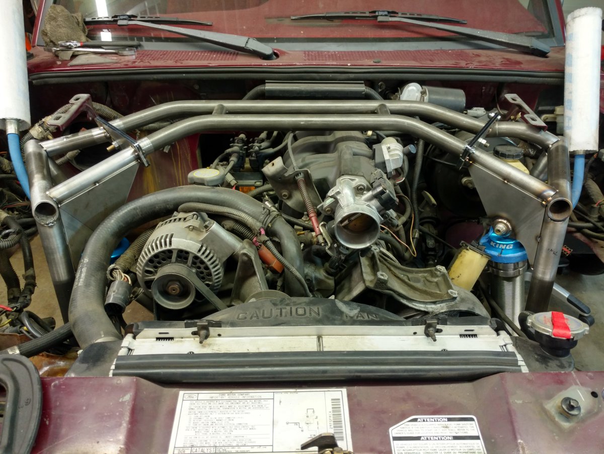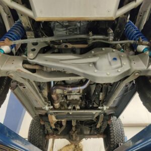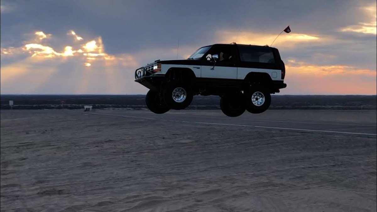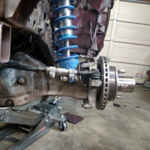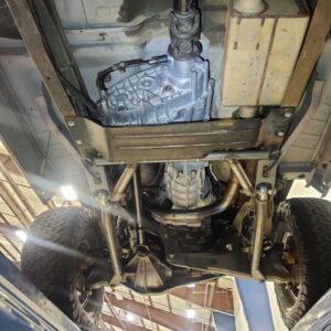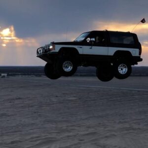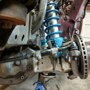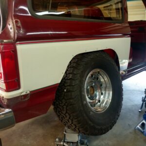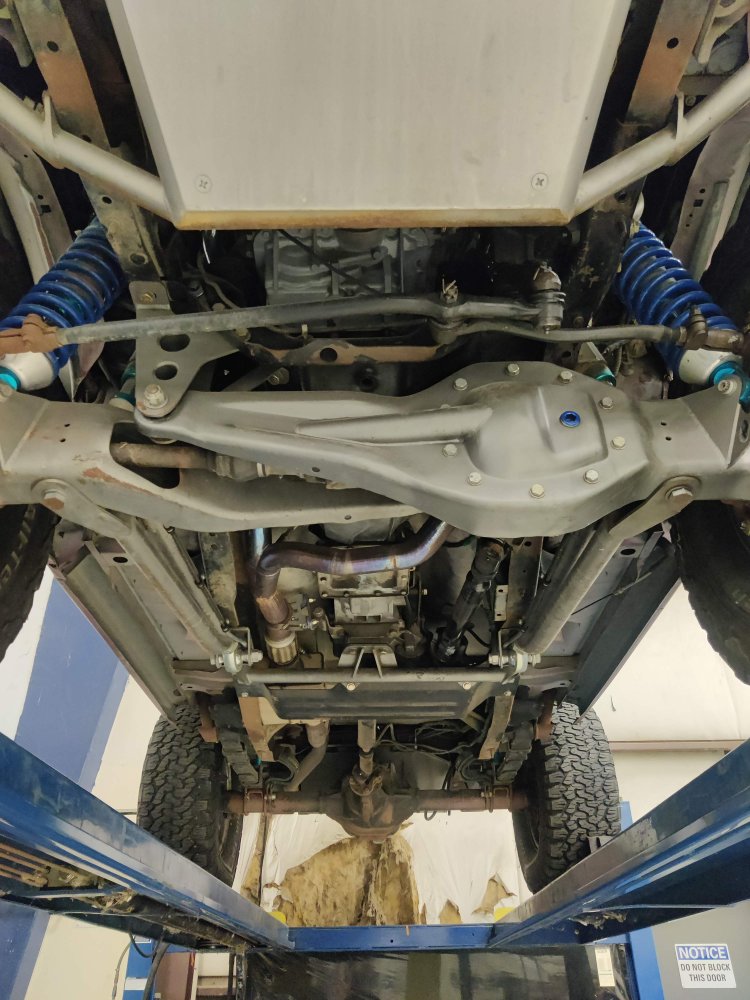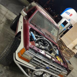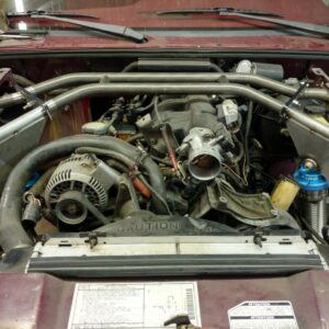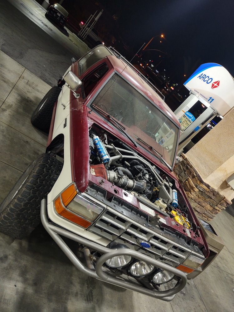 After purchasing the Bronco II the stock 140 horsepower 2.9L engine was replaced with a stock 160 horsepower 4.0L OHV engine, and then later upgraded to 207 horsepower 4.0L SOHC engine. The stock Dana 28 TTB front axle assembly was replaced with a larger Dana 35 TTB assembly that has been upgraded with Dana 44 steering knuckles and manual locking hubs.