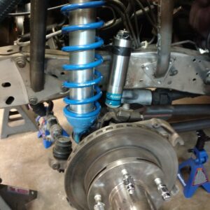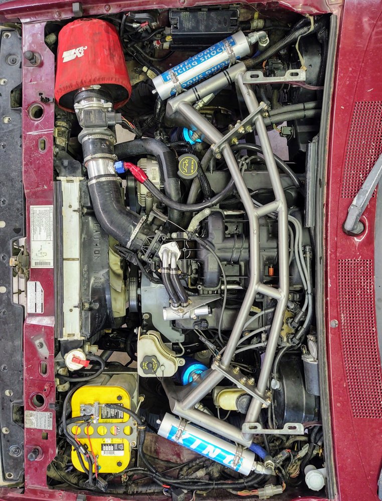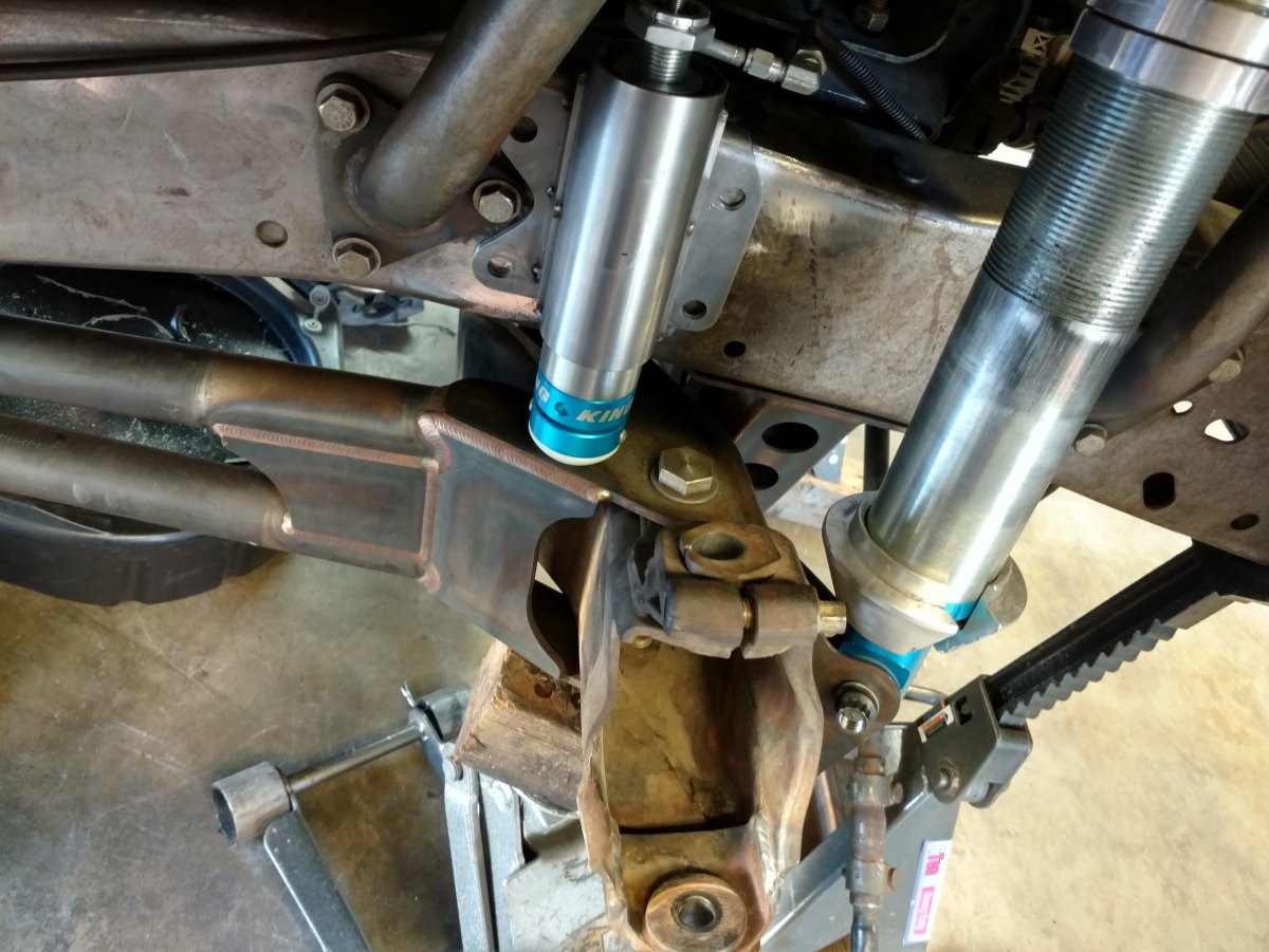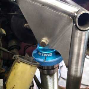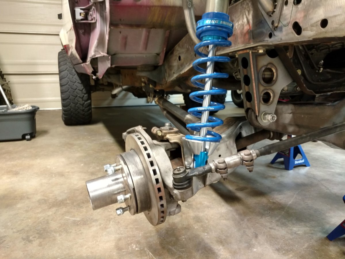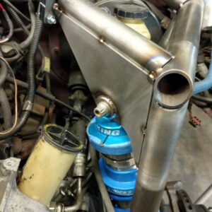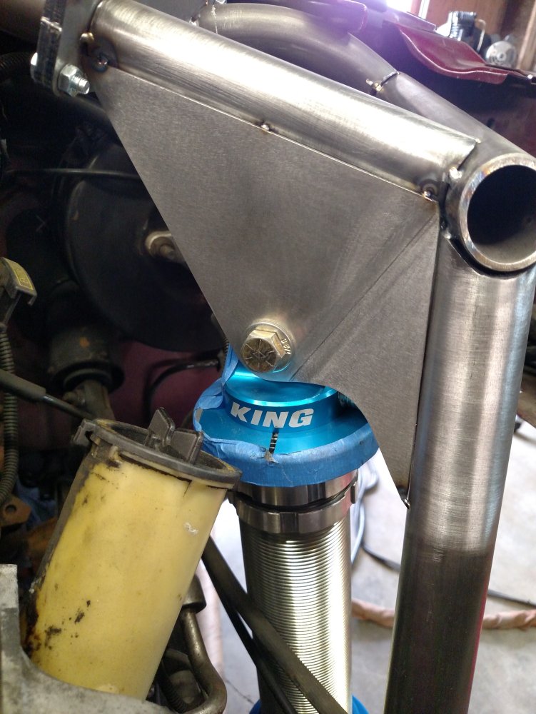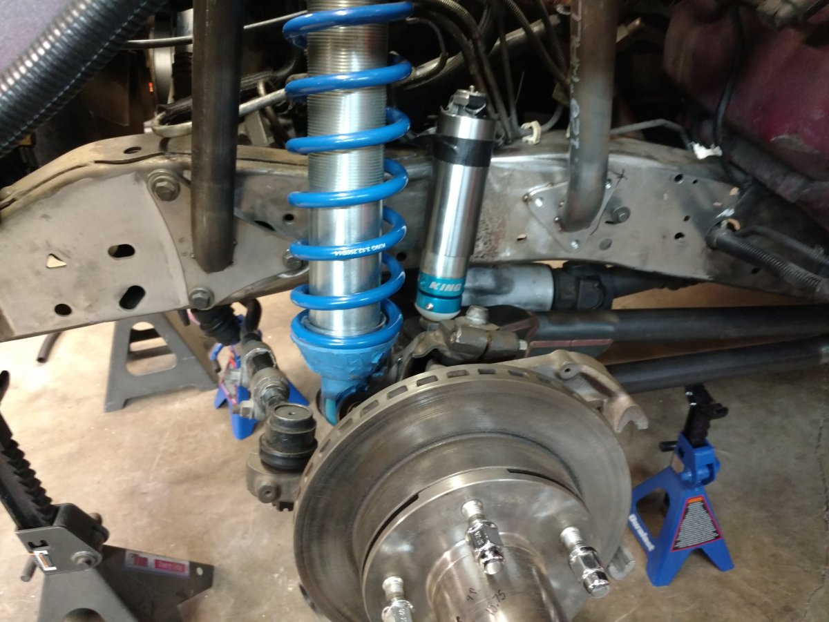 The stock front coil springs were replaced with King coilovers that mount to a custom engine cage.
