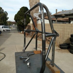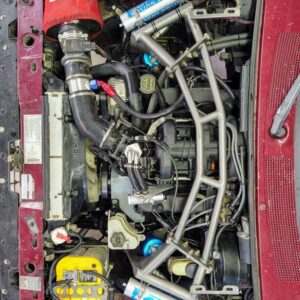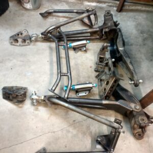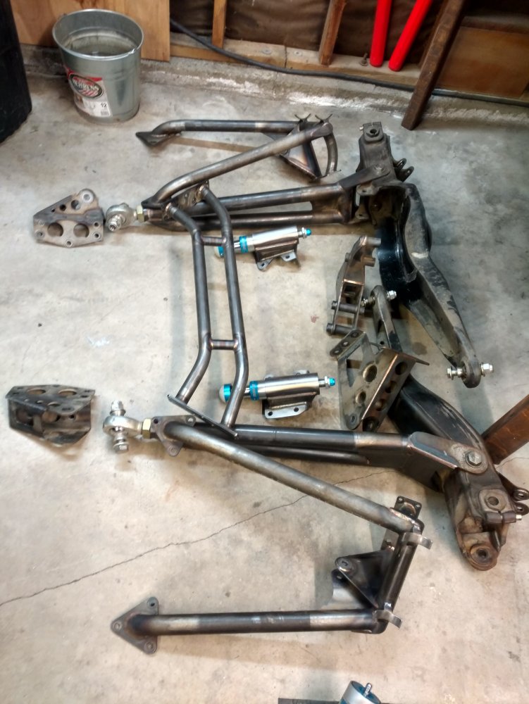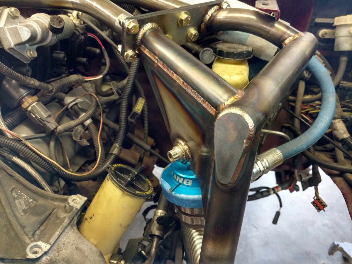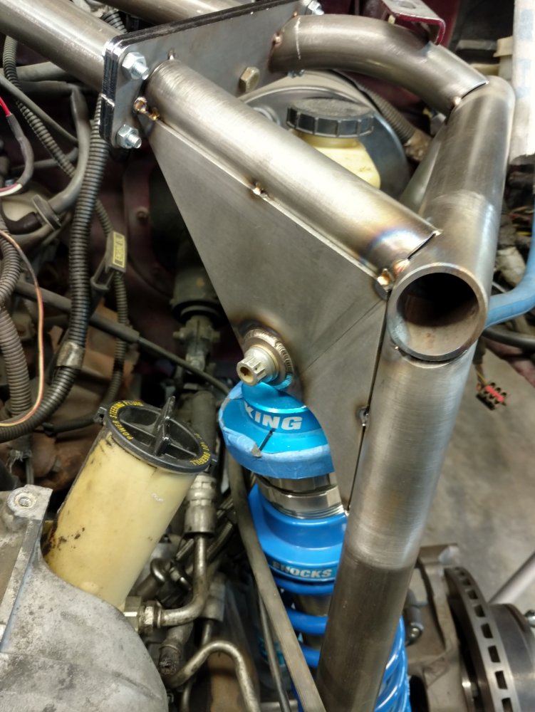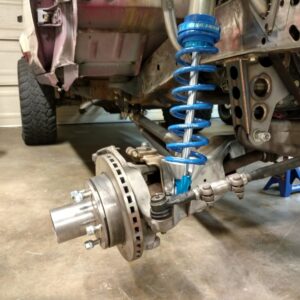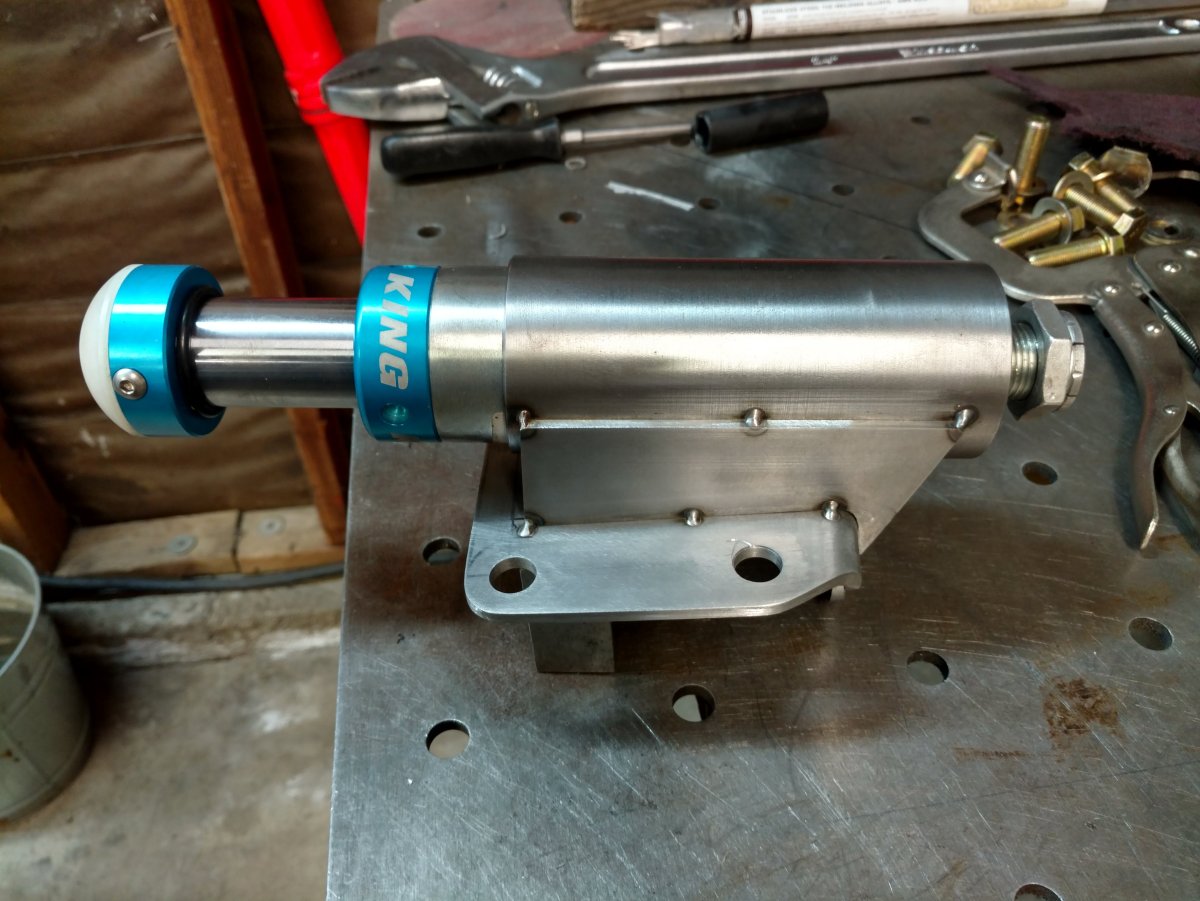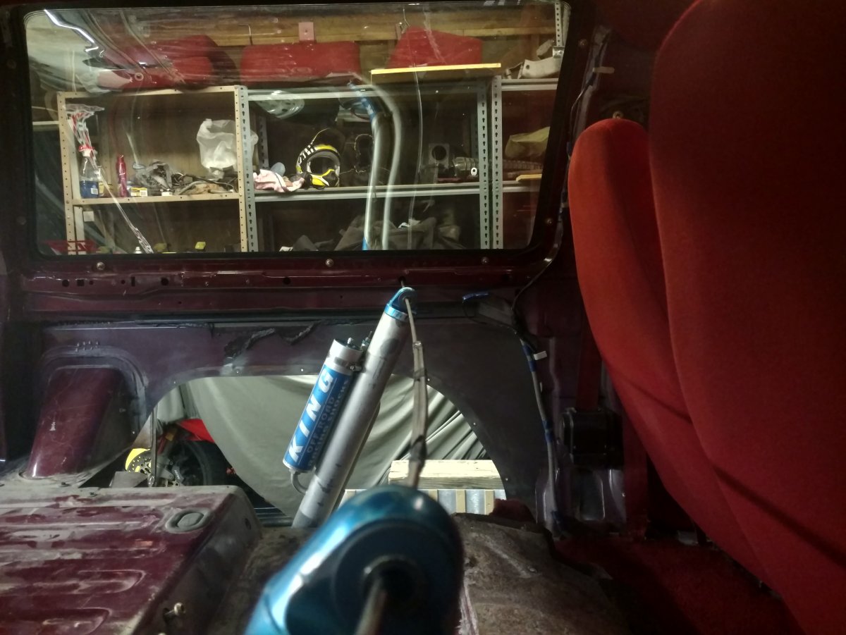 The stock front coil springs were replaced with King coilovers that mount to a custom engine cage.