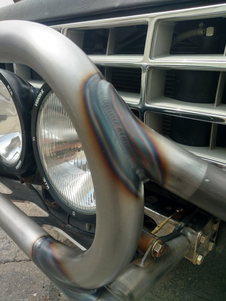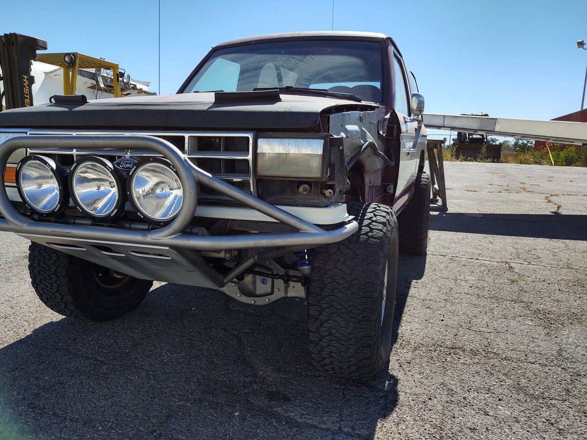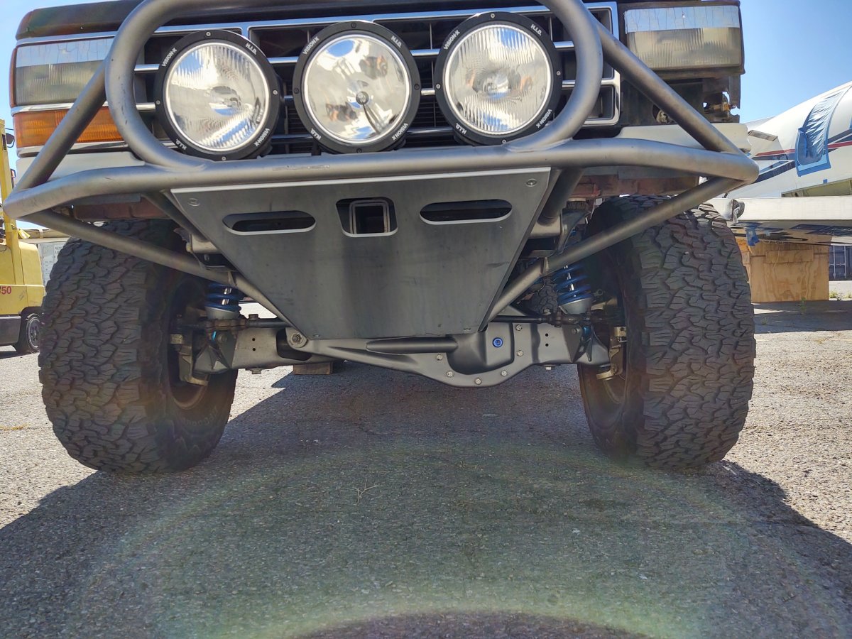 A custom bumper on the front protects the Bronco II and provides a mounting point for three (3) Vision-X HID offroad lights.