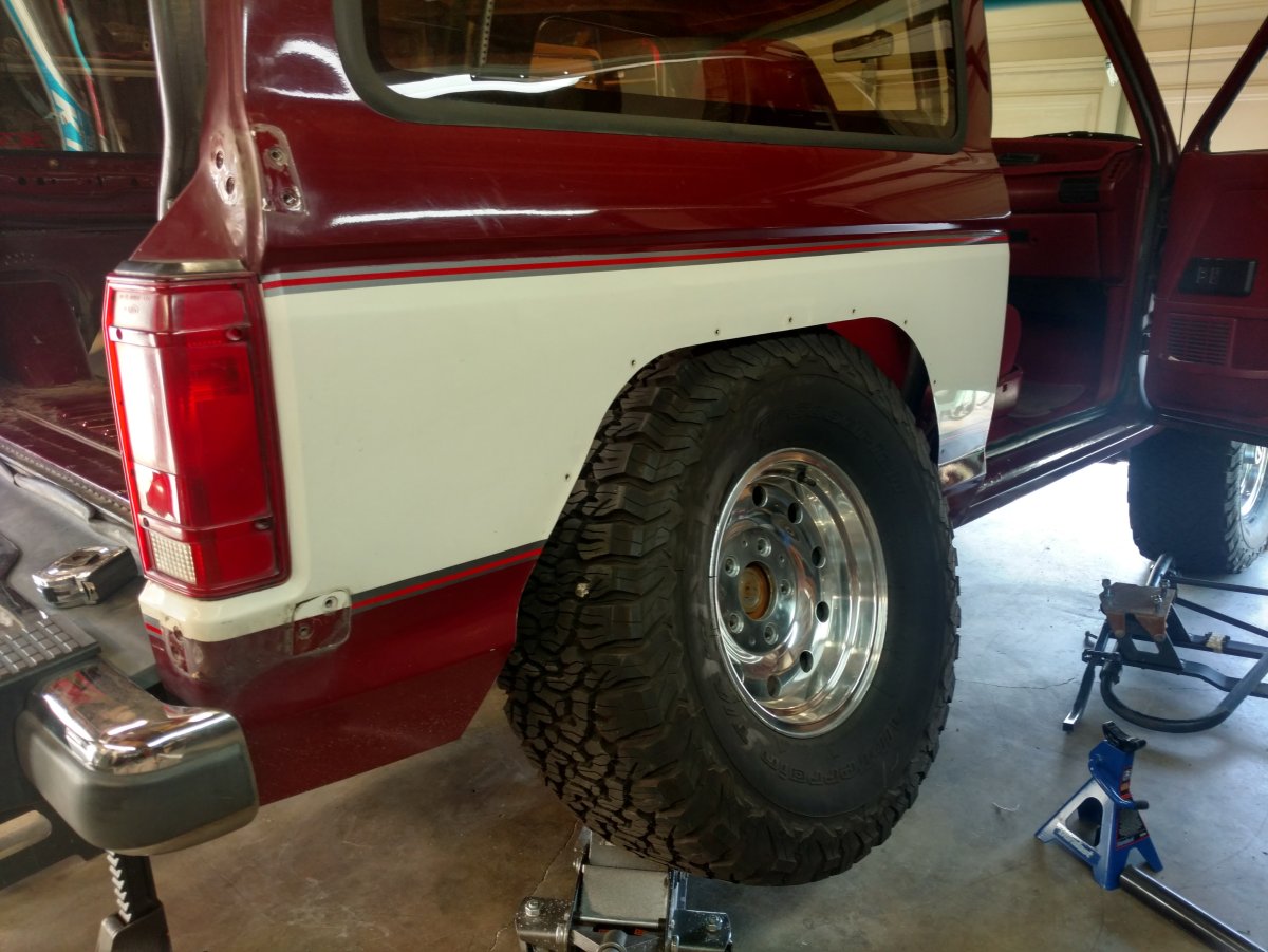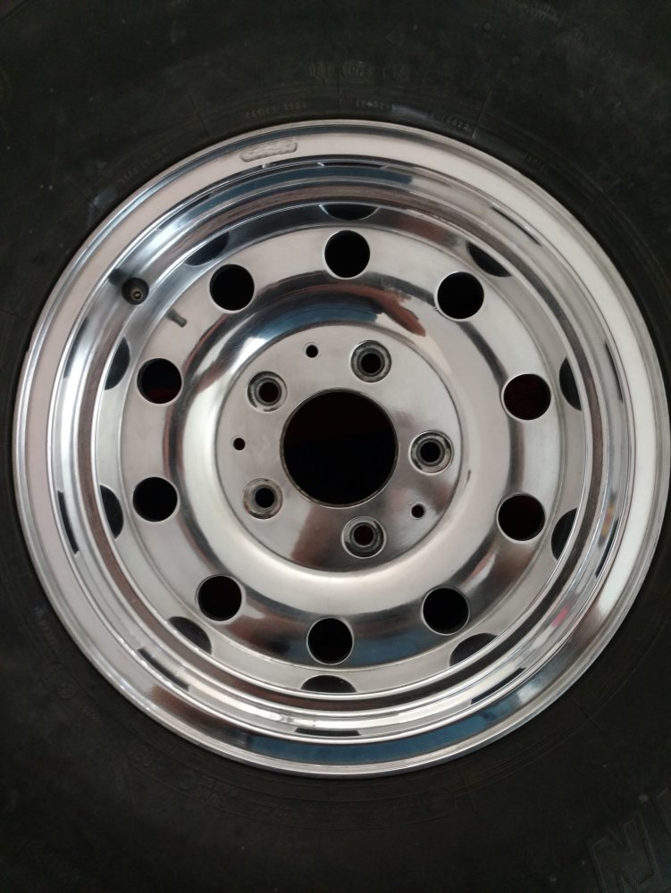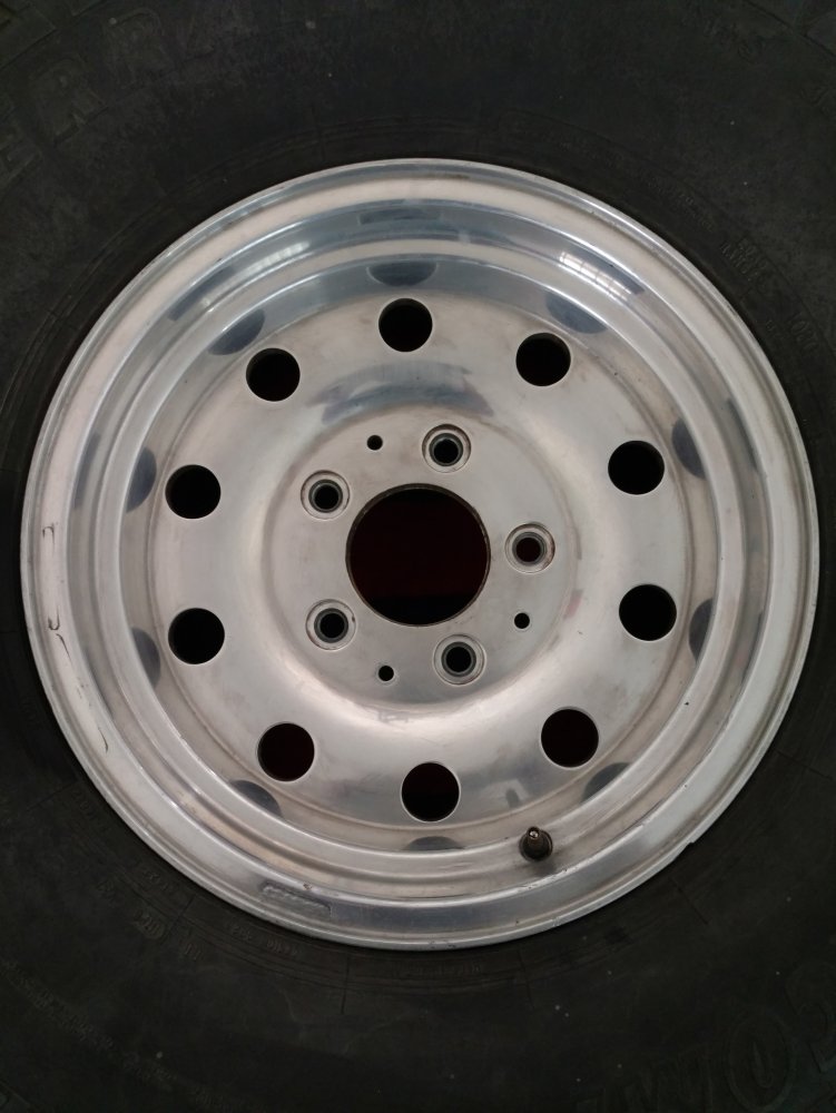Tires are 33×12.50×15 BFGoodrich All-Terrains on Ford factory Alcoa wheels from a Ford F-150.