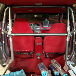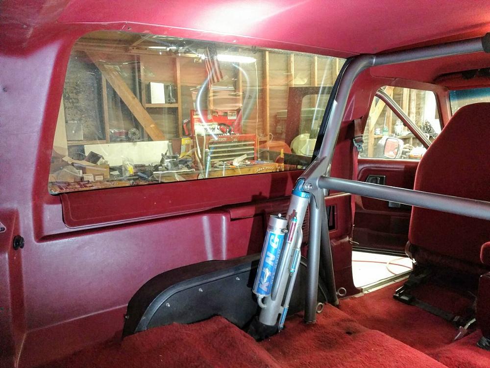The inside of the Bronco II received a custom cage that also acts as a mount for the rear King bypass shocks. The Ford 8.8-inch axle is located with a set of Deaver F31 leaf springs.
