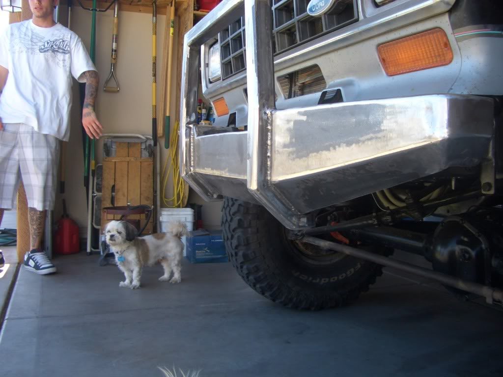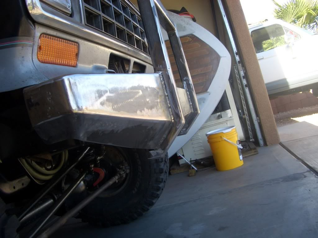 With the body back on, and everything hooked up and running, 4xranger fabricated a set of front and rear bumpers that could take some abuse on the rocks. He used 1/4” x 6” flat steel for the top and face, and 3/16” x 4” steel for the bottom on both bumpers. The front bumper includes a push bar made from 2” x 2” x 3/16” steel.