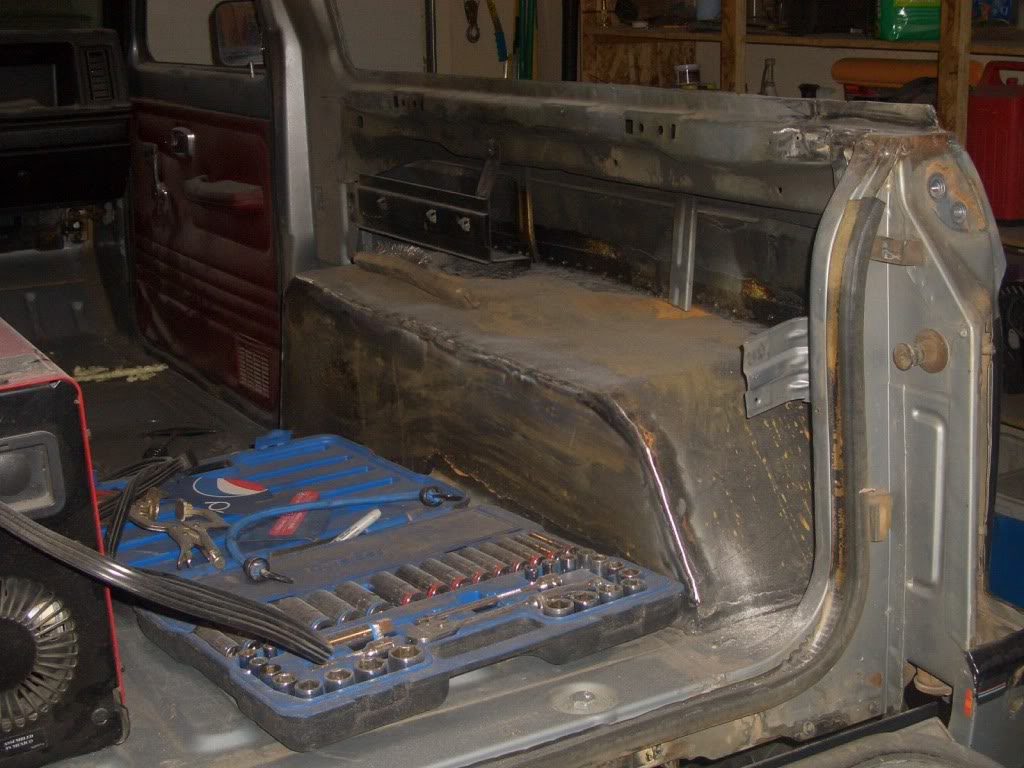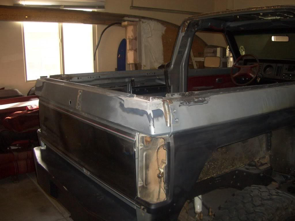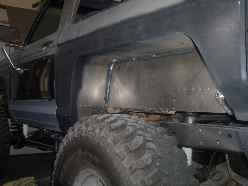 The fenders were cut out to clear the 35×12.5×15 BFGoodrich mud terrains. Custom flares were added to cover the tires, and keep the truck legal on the highway. He also rebuilt the wheel wells to cover the areas that were cut away.