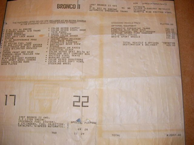 This page is about the Sherrod Bronco II’s. The Bronco II was done in Sherrods Ponder Texas plant which is now closed. The number of convertibles made is unknown. The convertible top was a dealer option in 1987-1989. The dealer (not sure which one) hired a company called Sherrod Conversions to do the convertible top. We know this because of the “Sherrod” decals on the tailgate.