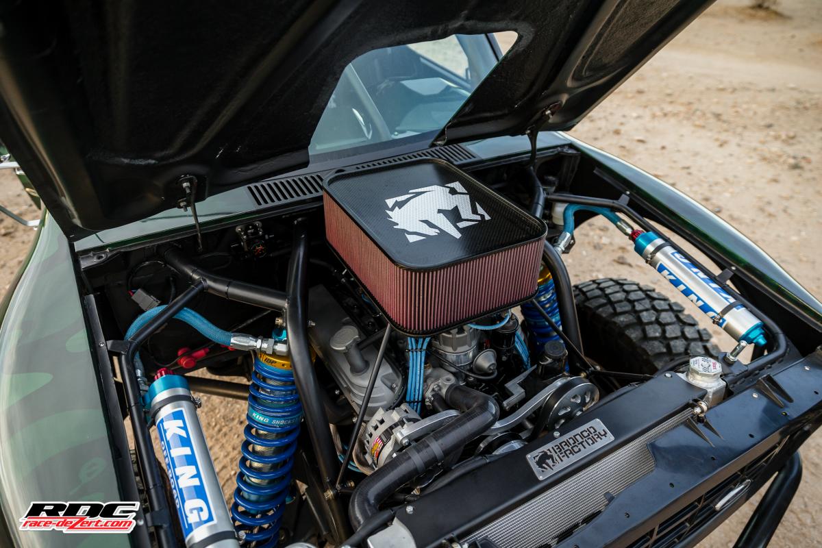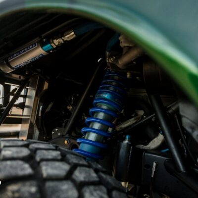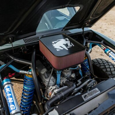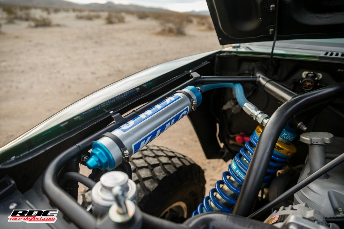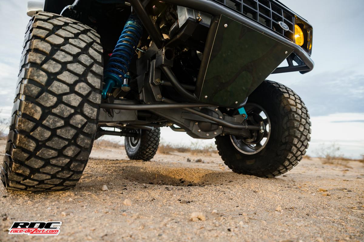 The rear 7.5-inch axle was replaced with a Ford 8.8-inch axle and is suspended by a custom set of Deaver leaf springs, and a King bypass shocks still making 17″ of wheel travel.