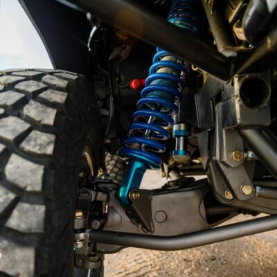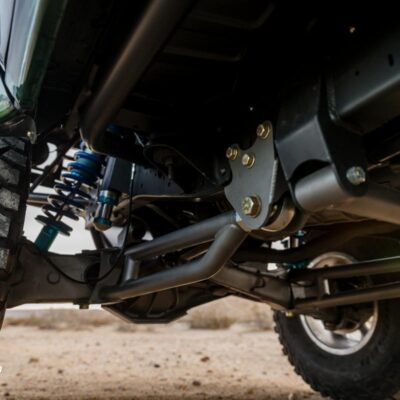 Michael stretched the Bronco II wheelbase from 94-inches to 98-inches, and then swapped out the Dana 28 TTB front axle for a Dana 35 TTB axle found under the Ford Ranger and Explorer. The axle beams were modified to be 4-inches wider on each side with King Coil-overs resulting in 17-inches of wheel travel.