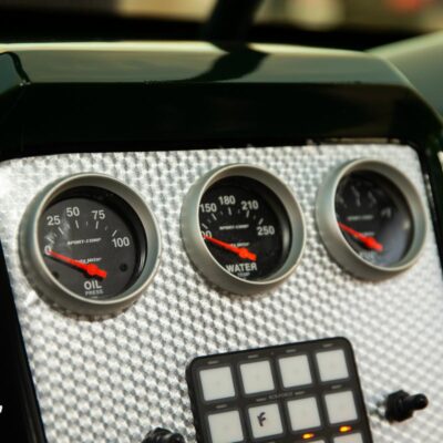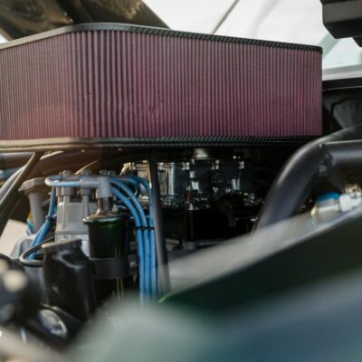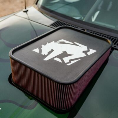 The stock 2.9L V6 was replaced with a Ford 3.2 CID V8 that’s fed by a carburetor and that huge K&N Carbon Fiber air filter sticking out of the hood.