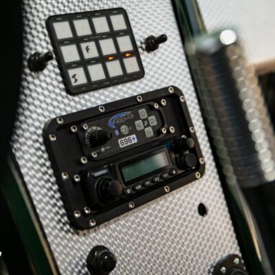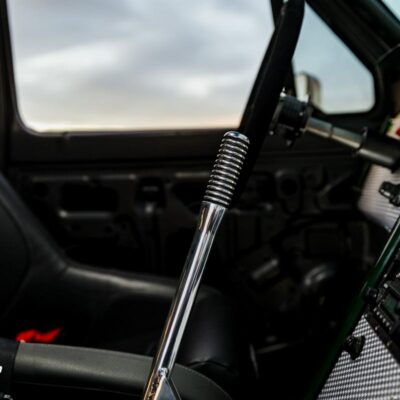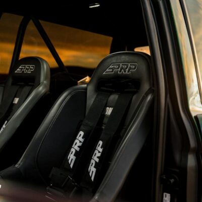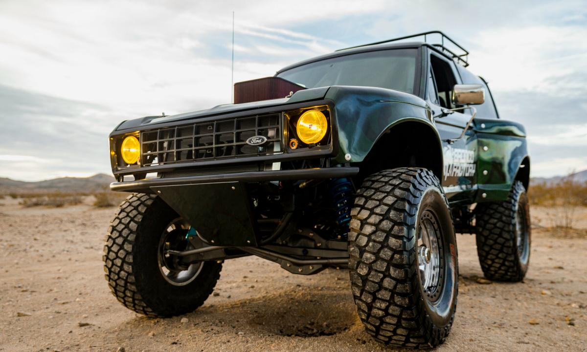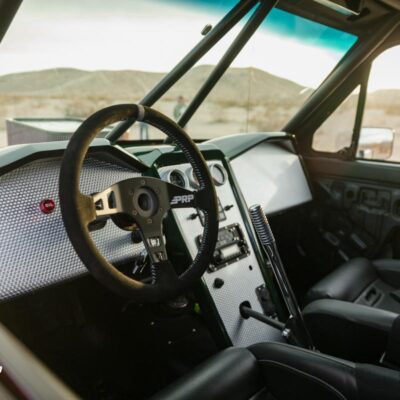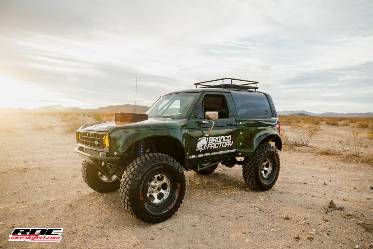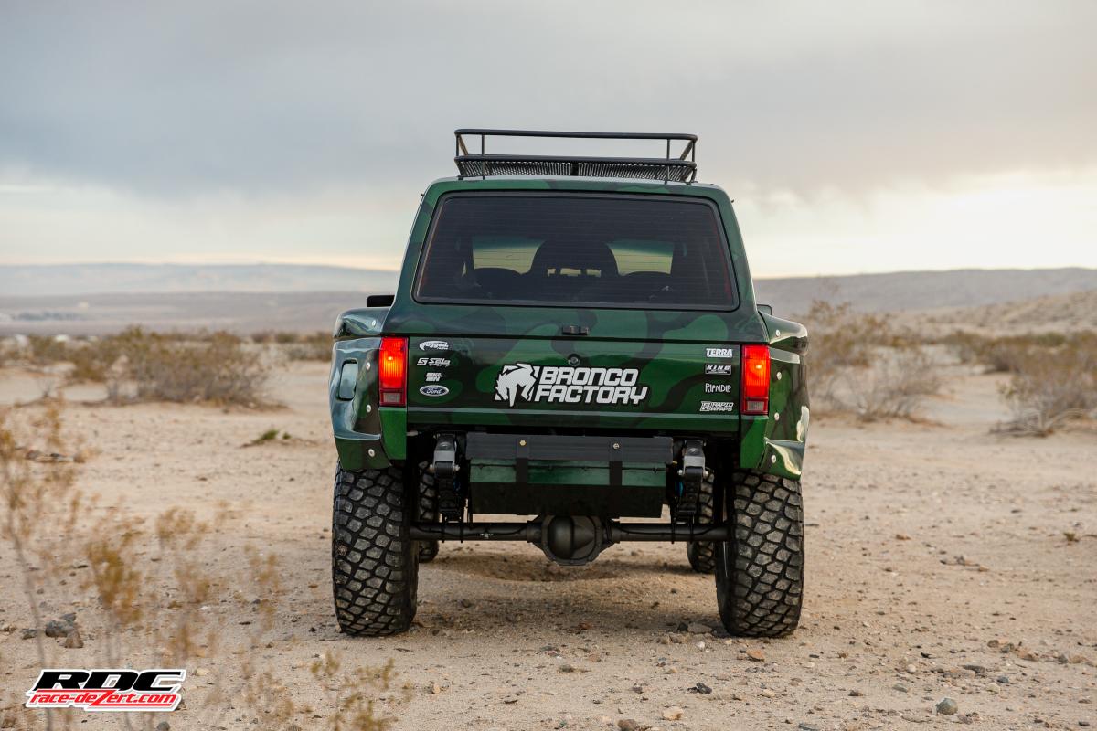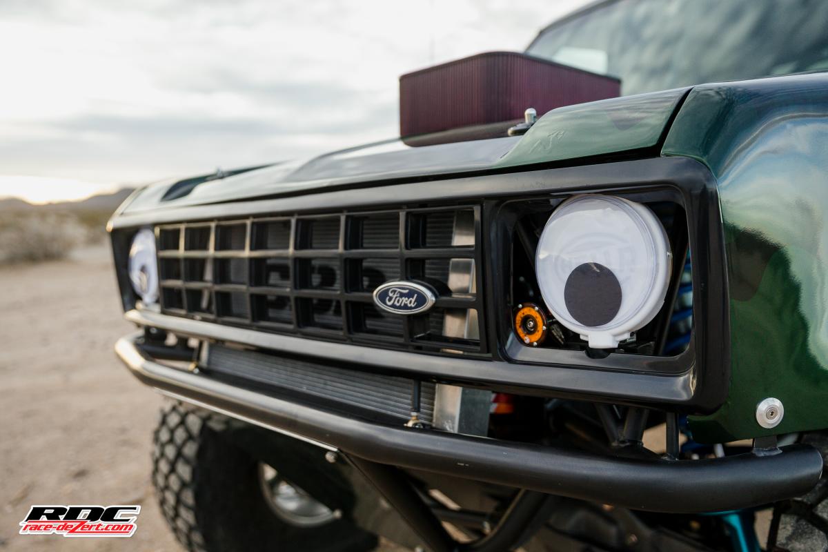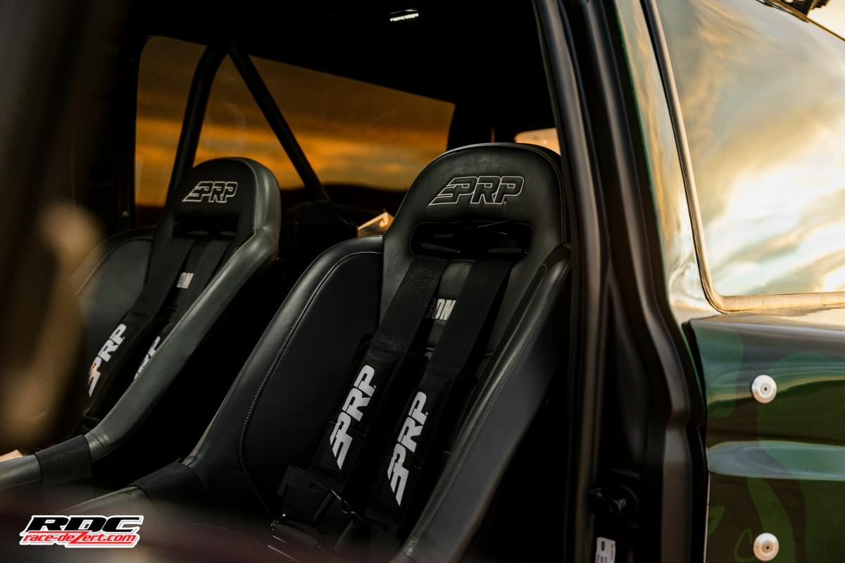 A full roll cage and PRP seats and harnesses keep Michael safe if he decides to launch this Bronco like he does the full size.