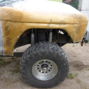 The last stage of this Bronco II’s life saw it getting a Dana 44 TTB axle beam swap using a pair of Joel’s custom Dana 44 TTB axle beam brackets. Unfortunately, rust had taken its toll on the Bronco II, and the project was abandoned. The Bronco II was scrapped, but the fiberglass fenders, and all of the good parts were salvaged for later projects.