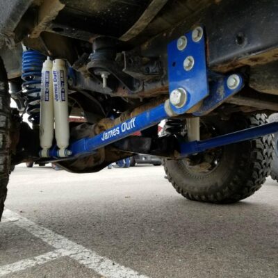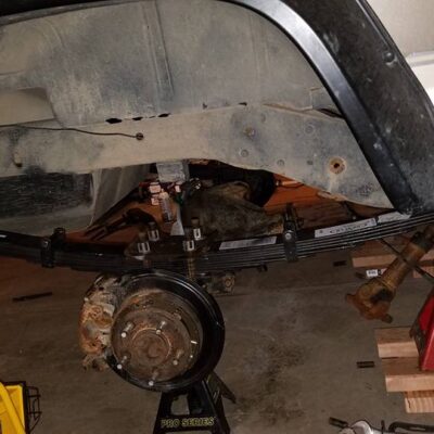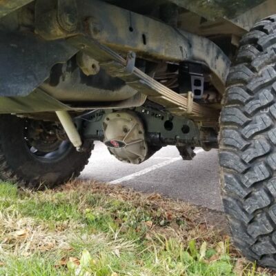 The rear was upgraded as well. The stock axle was replaced with a Ford 8.8-inch axle with 4.88 gears and a True Trac. The axle shafts were replaced with Yukon chromoly axles with c-clip eliminators, which also gains a ford 9-inch rear wheel bearing setup. The axle housing was trussed for strength, and the differential is protected by a G2 Differential Cover.