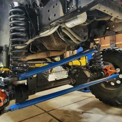 The rear axle is a Ford Explorer 8.8-inch axle with 5.13 gears, disc brakes, an axle truss, and a Yukon locker. It’s suspended by a set of Deaver leaf springs.