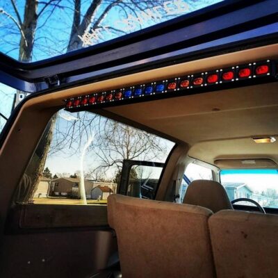 On the inside the Bronco II received a PRP steering wheel, Speed Hut gauges, and a Xprite chase bar in the rear window. The chase bar allows the vehicle to be more visible in poor visibility conditions and also adds the benefits of a third brake light.