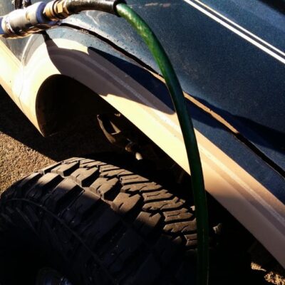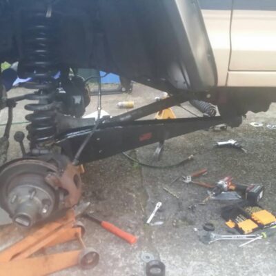 Upgrading to a set of Goodyear Kevlar MTR 35-inch tires needed a gear change to compensate for the larger tires. Harley accomplished this by picking up a junk 1992 Ford Ranger 4×4 that came with 4.10 gears and a larger Dana 35 front axle.