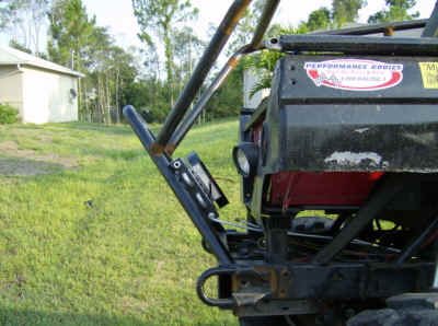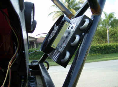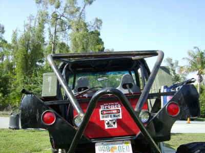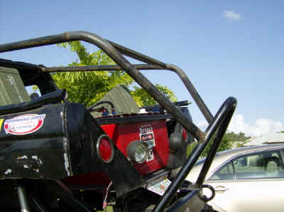 The Bronco II’s doors were cut down and capped off with 4-inch exhaust pipe cut in half. The tops of the rear tubs were enclosed to create storage compartments. The Interior sports a 12-point Jegs cage, racing buckets and Simpson 5-point harnesses. Tunes are provided by a Jenson double DIN Marine stereo w/ removable face, CD, cassette, a 6-disc changer and a remote that works both. Two West Marine 100w 5-1/4″ sealed round speakers and two Sony 5-1/4″ 60w speakers (not waterproof).