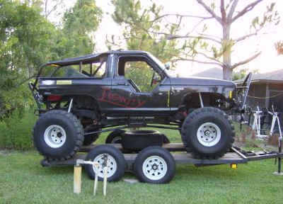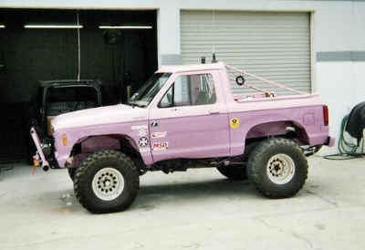 After some looking I came across Ted Harmon’s (redneckwelder01) 1988 Ford Bronco II that he named ‘Insanity’. Ted bought the Bronco II in 1995 for $300.00 to use as a mud truck. He cut the fenders to fit 33’s and wheeled the truck for 7-years. A few of his friends got involved in rockcrawling in 2002 and invited him on a trip to Tellico. Ted quickly found out that there was a big difference between mud and rockcrawling. His first problem was the lack of articulation and power. On that first trip to Tellico Ted backed into a tree destroying the rear hatch. After returning home he cut off the back half of the top with a gas-powered concrete saw. He also added a 3-inch body lift and 4.10 gears. A friend at a local body shop offered to paint the Bronco II for free. When Ted went to pick it up, he found that the Bronco II had been painted pink and lavender. It was meant to be a joke, but Ted got him back by driving it that way for the next 4-years. In 2005 Ted ripped a hole in the gas tank and decided to replace it with a 33-gallon fuel cell in the ‘bed’ of the Bronco II.