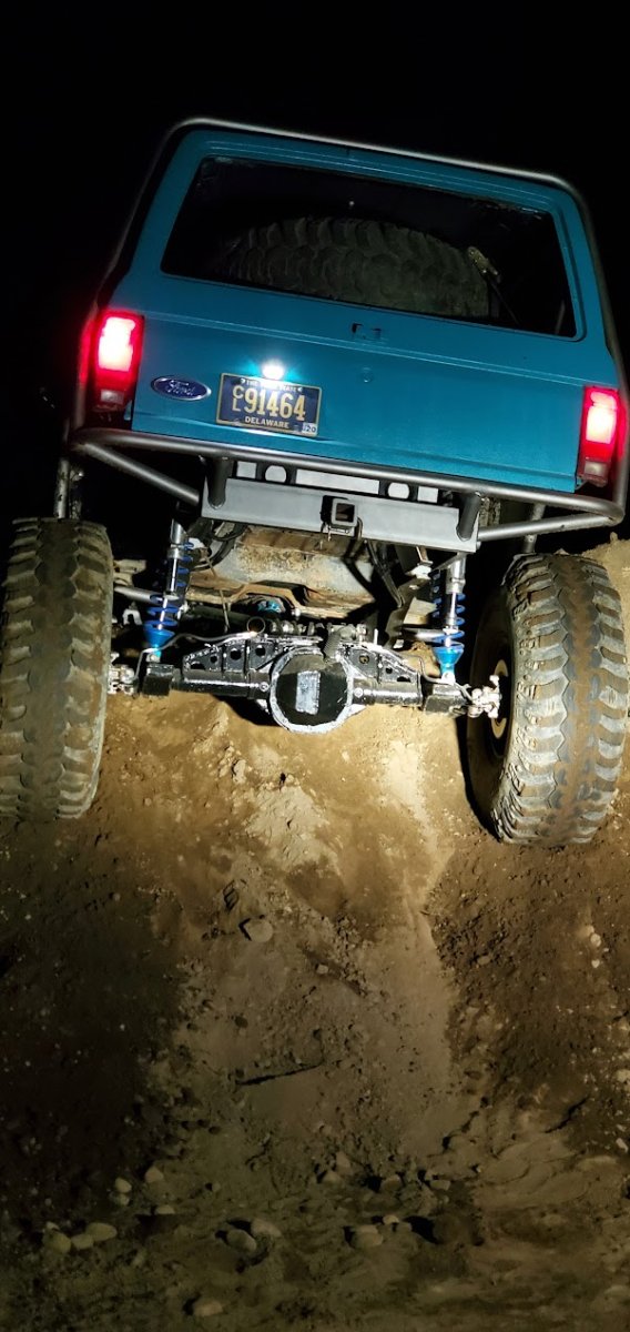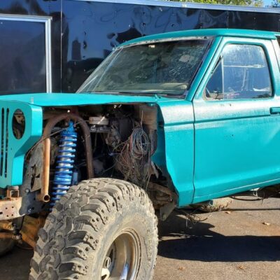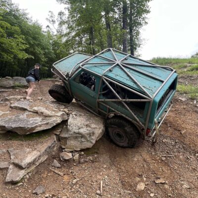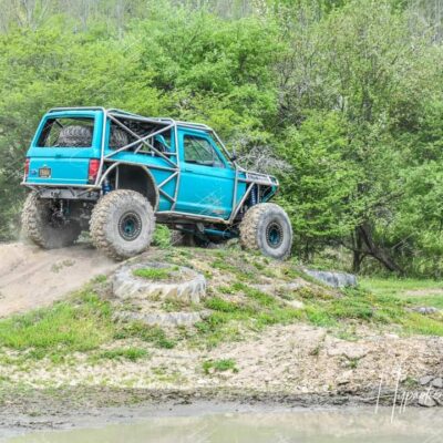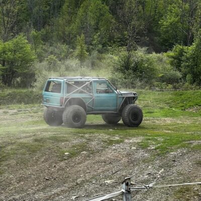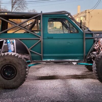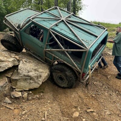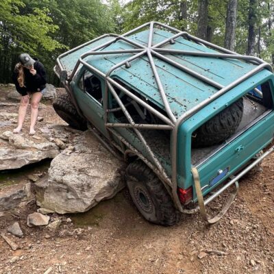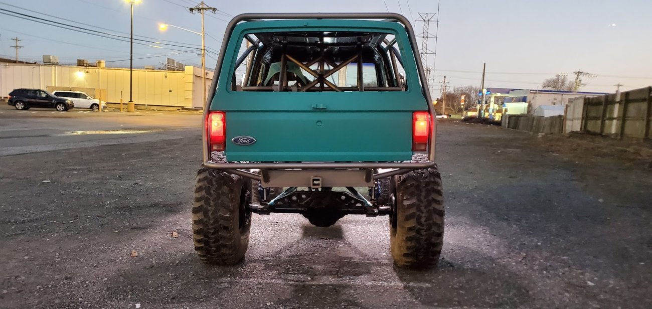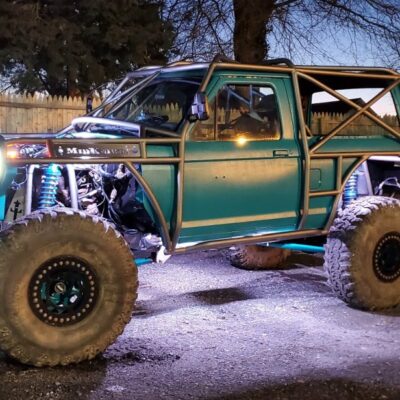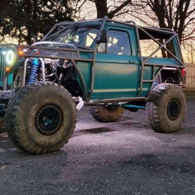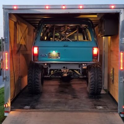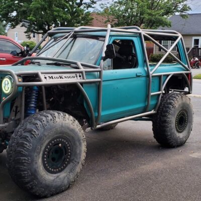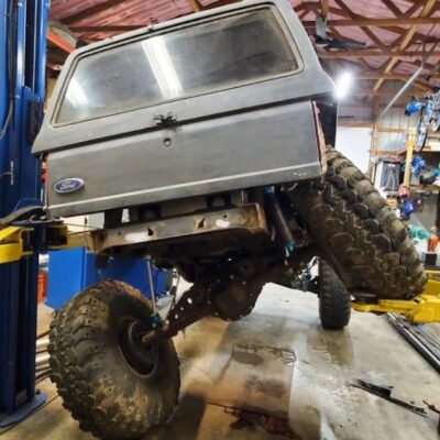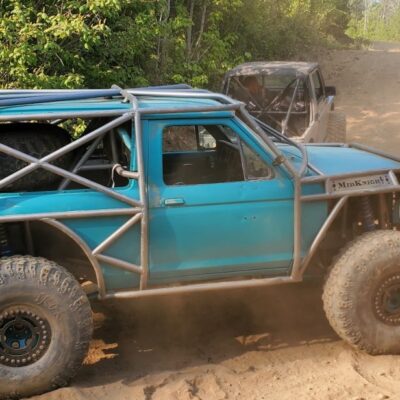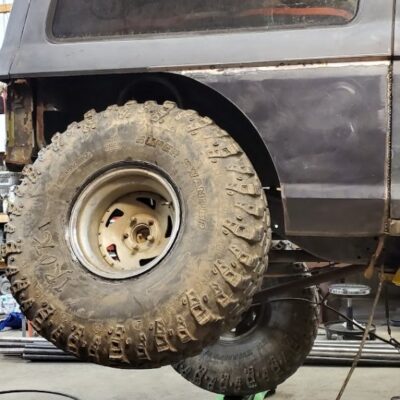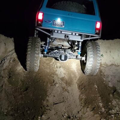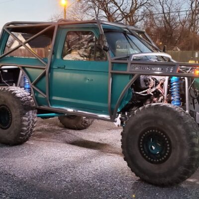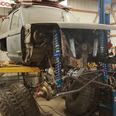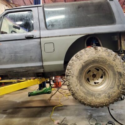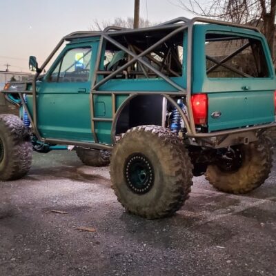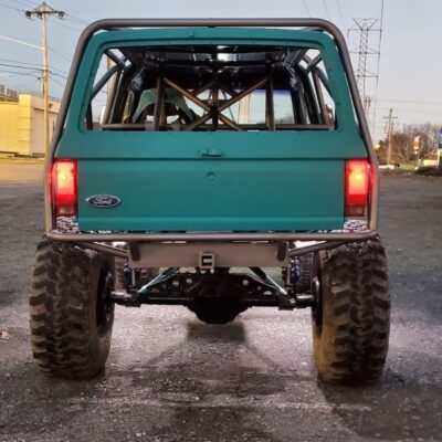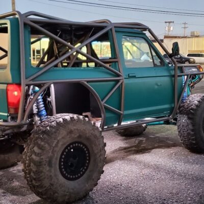 The Bronco II still uses the Ford 2.9L V6 that came in the Bronco II and is backed by a C5 automatic transmission that’s been modified with C4 gears and a reverse manual valve body. Behind the transmission is a BW1350/BW1354 transfer case doubler with twin sticks. The gives the Bronco II the crawl ratio it needs to climb rocks.