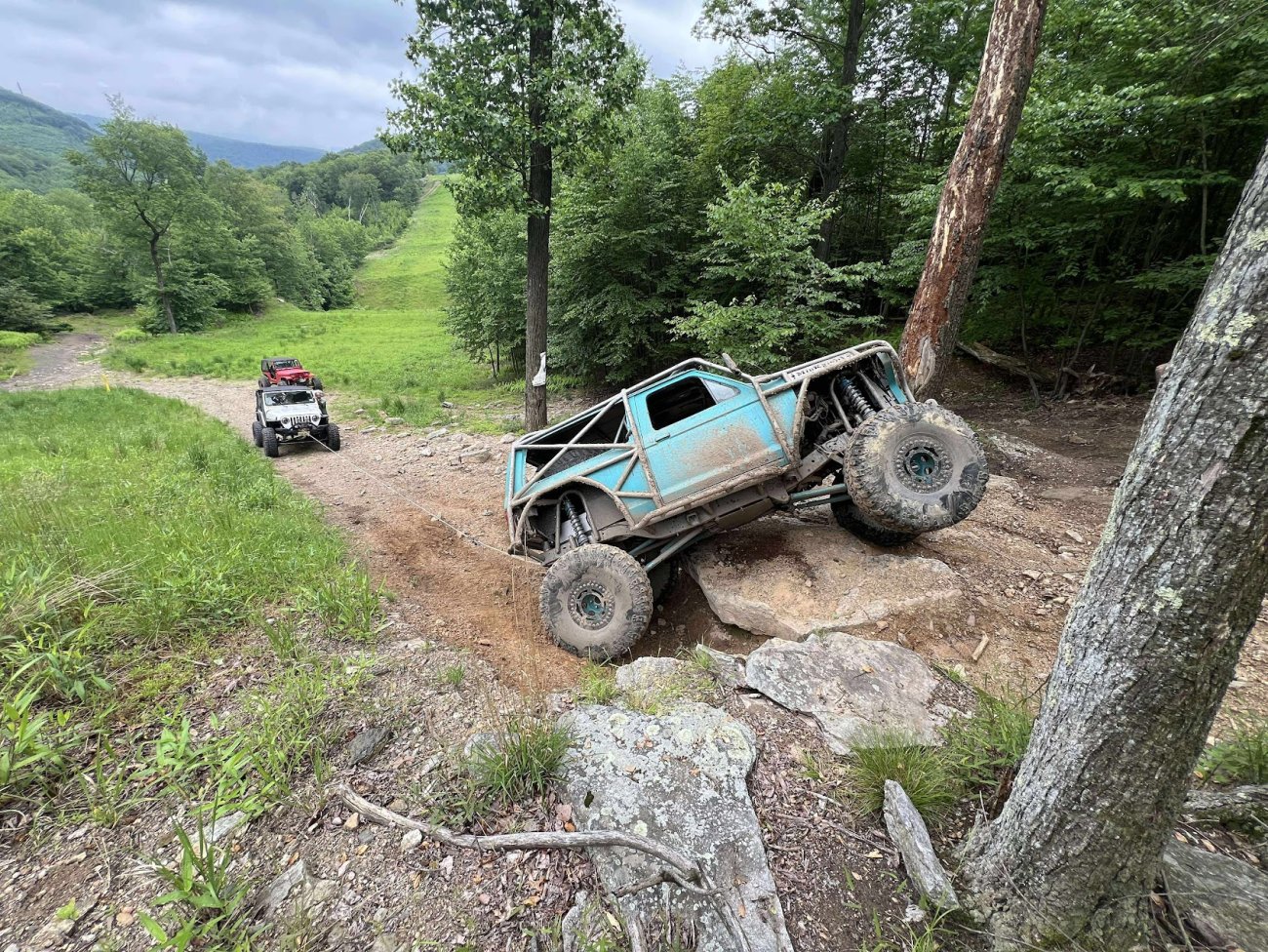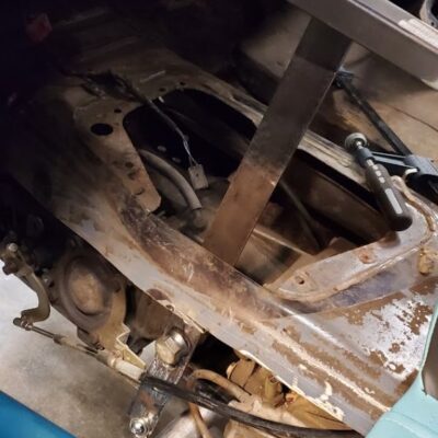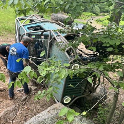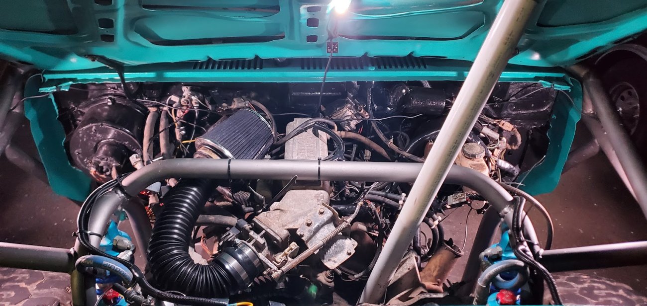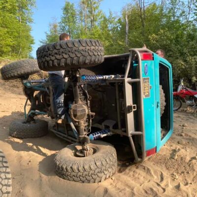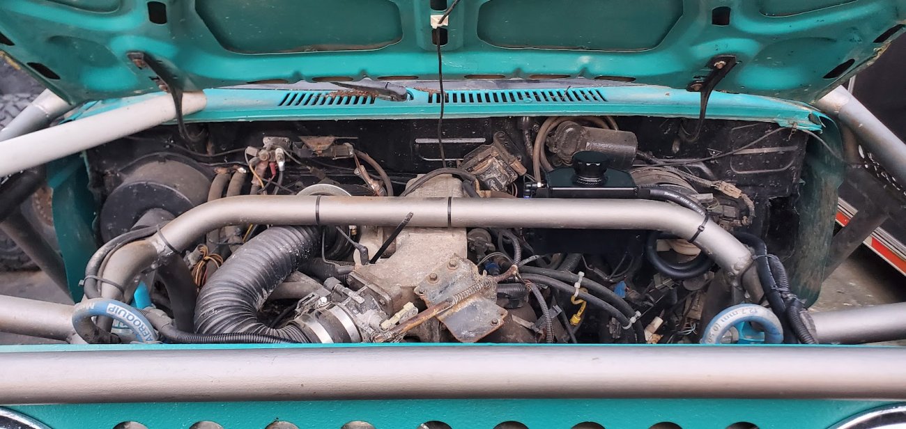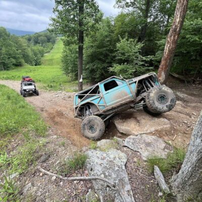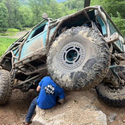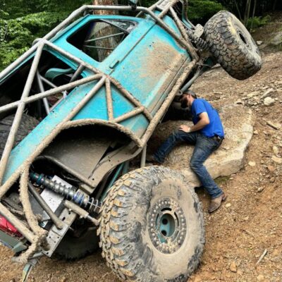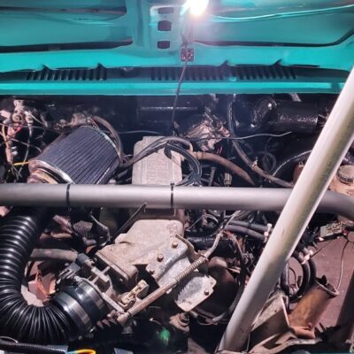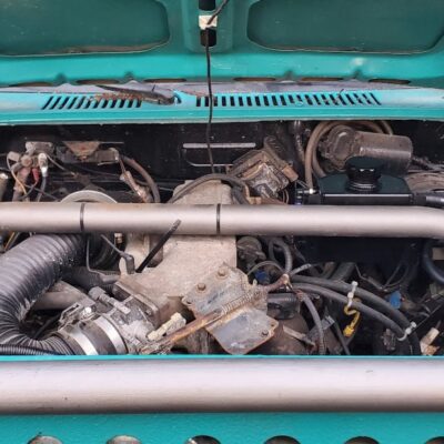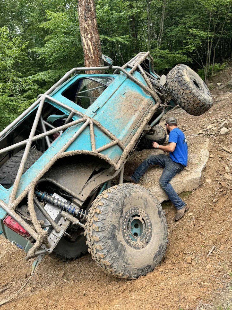 The Bronco II still uses the Ford 2.9L V6 that came in the Bronco II and is backed by a C5 automatic transmission that’s been modified with C4 gears and a reverse manual valve body. Behind the transmission is a BW1350/BW1354 transfer case doubler with twin sticks. The gives the Bronco II the crawl ratio it needs to climb rocks.