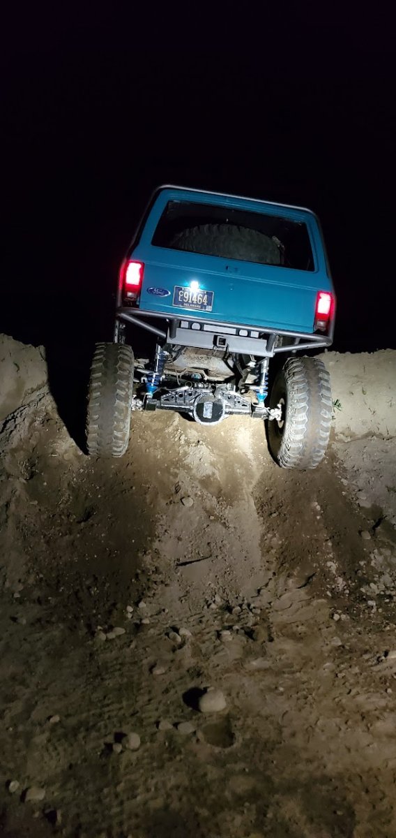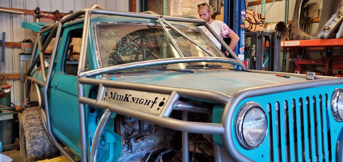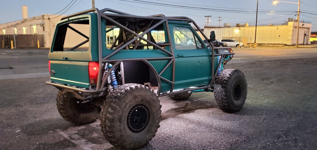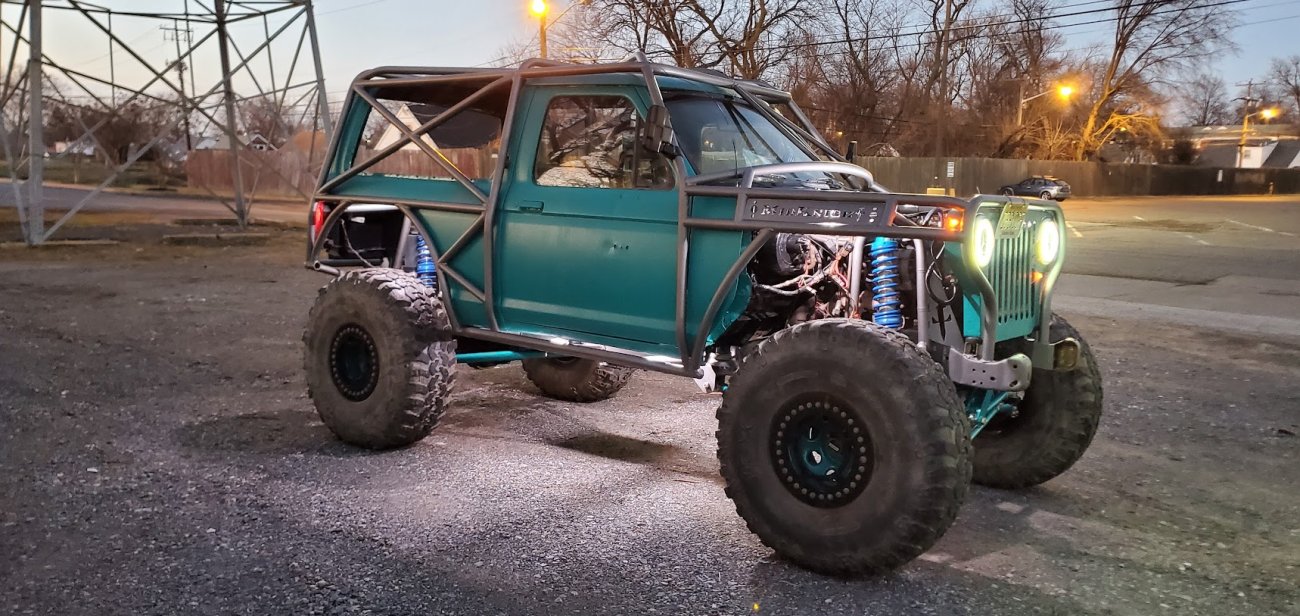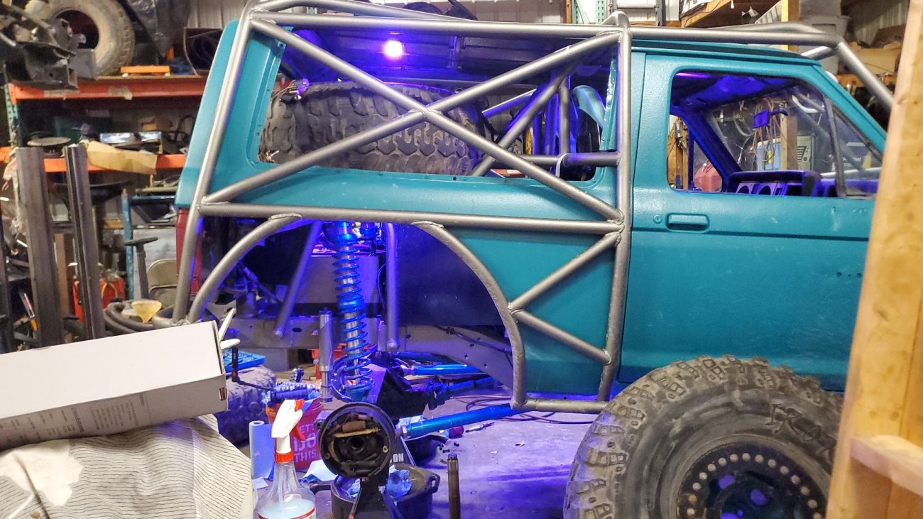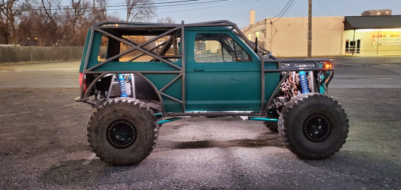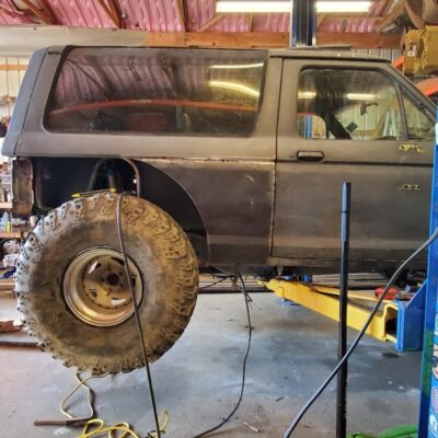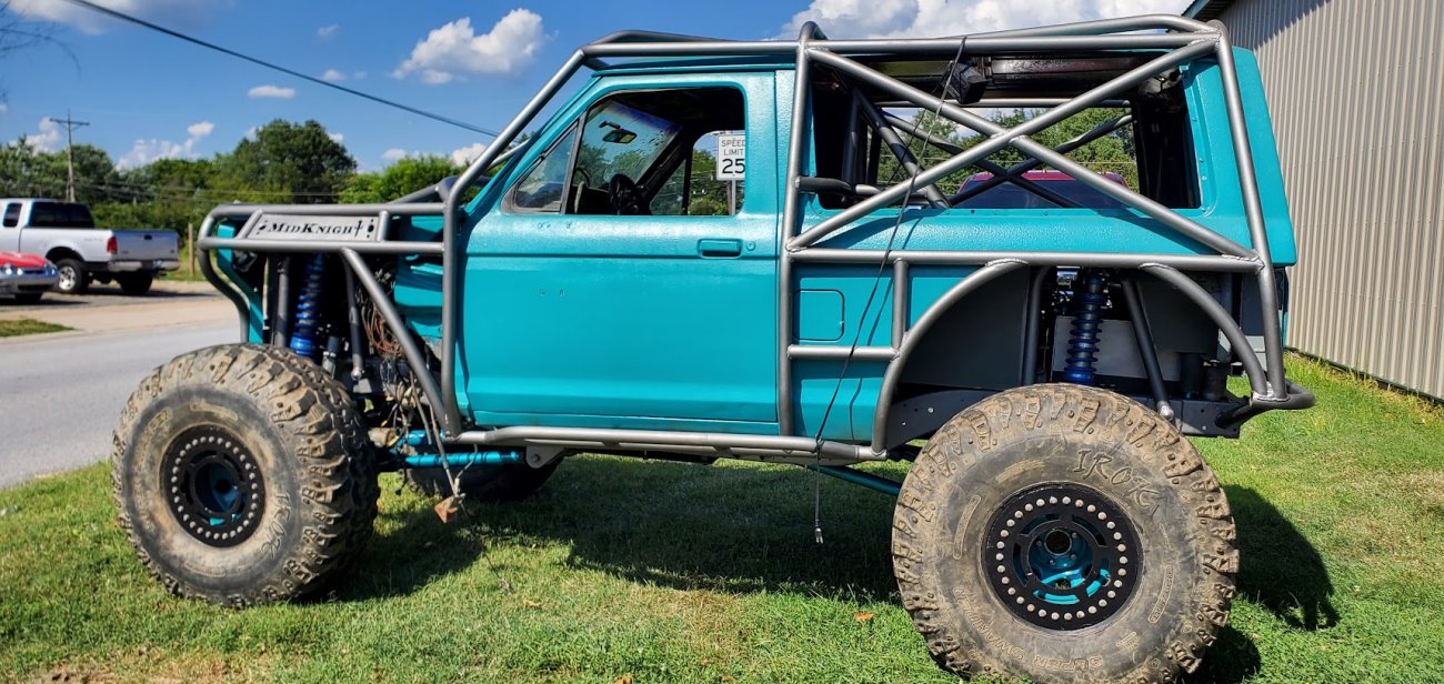 Dugan of MidKnight Fabrications had a modified Ford Ranger, but the body was trashed from a few rollovers and tree encounters. He found an old Bronco II and decided to transfer all of the good parts from the Ranger to the Bronco II.