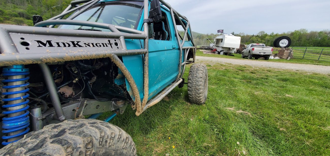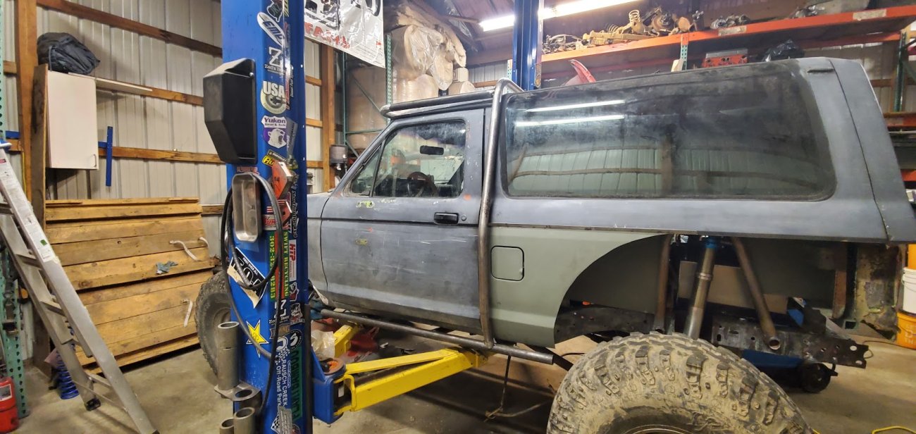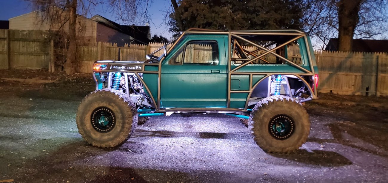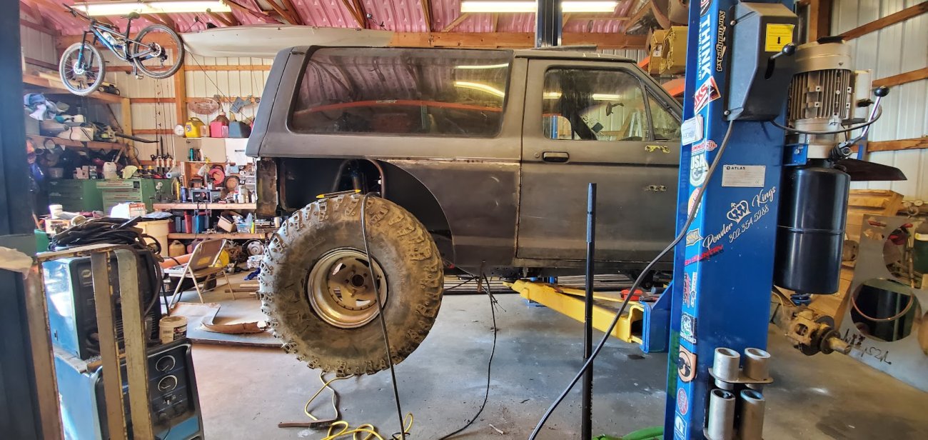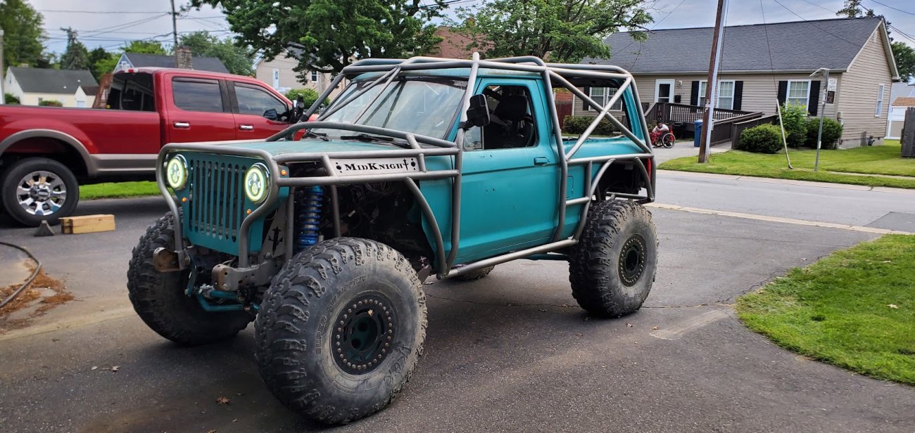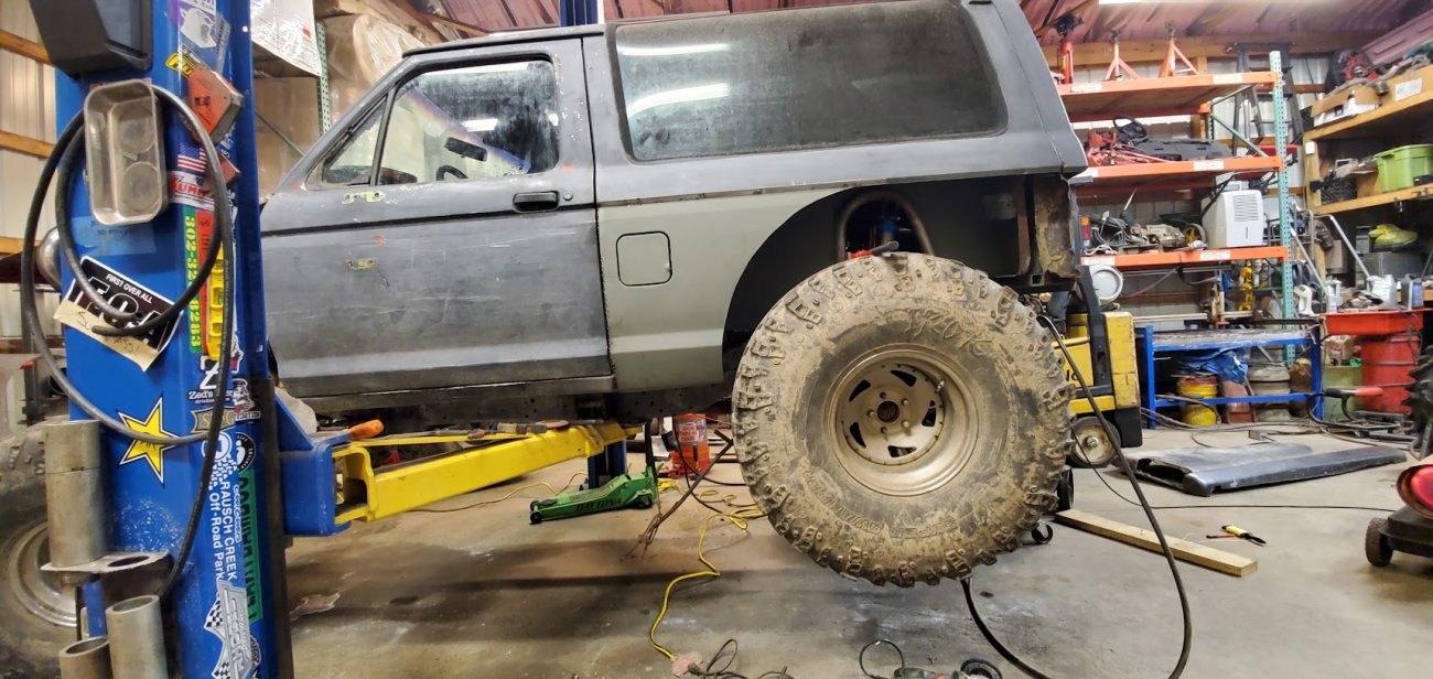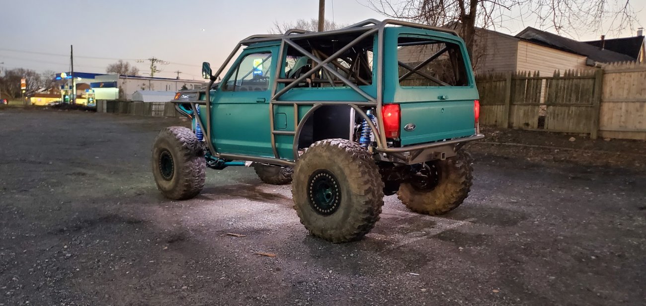 Dugan of MidKnight Fabrications had a modified Ford Ranger, but the body was trashed from a few rollovers and tree encounters. He found an old Bronco II and decided to transfer all of the good parts from the Ranger to the Bronco II.