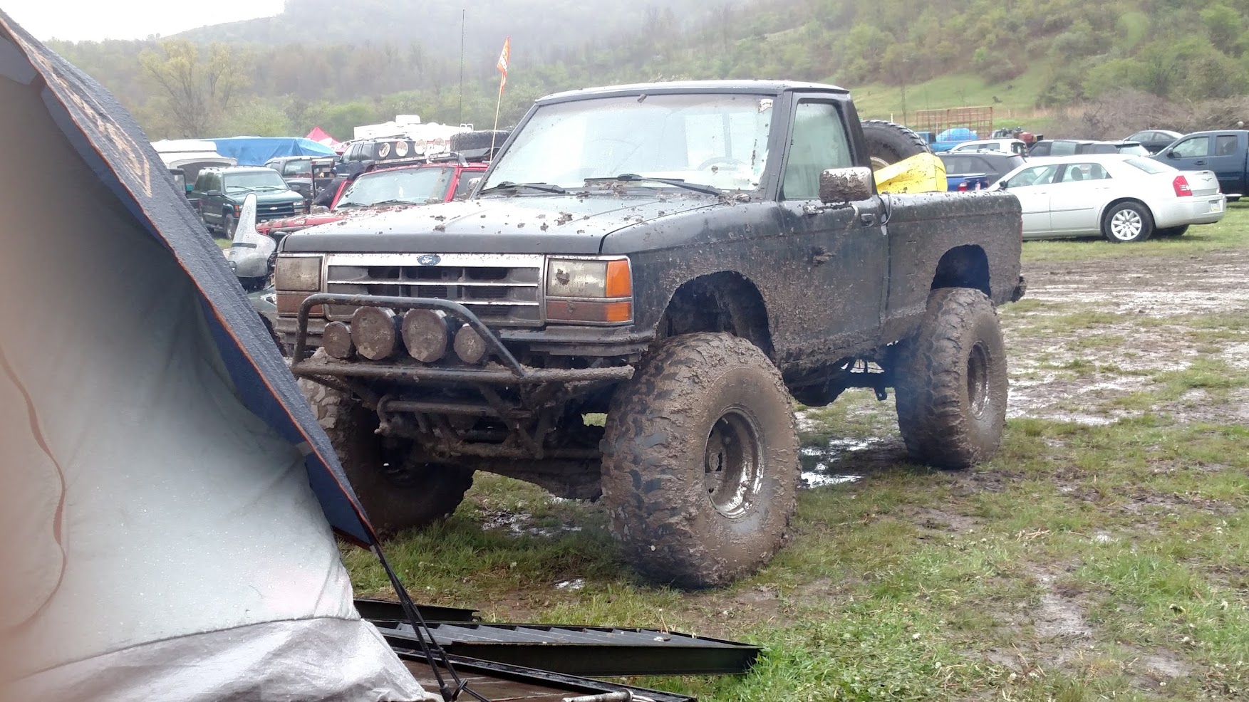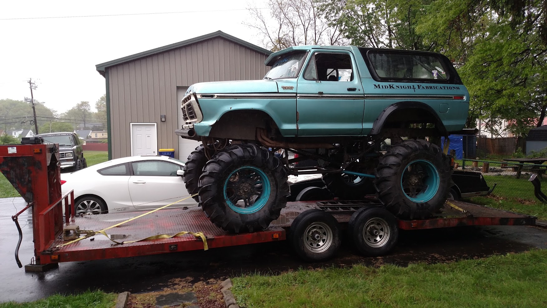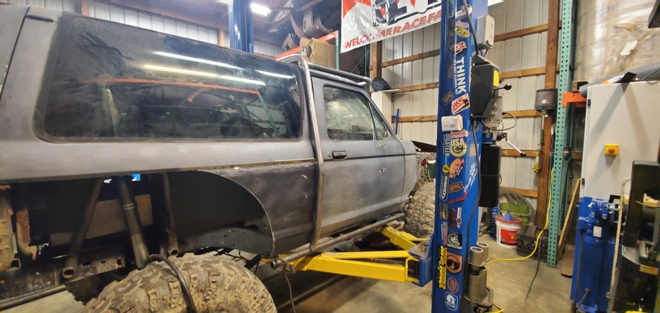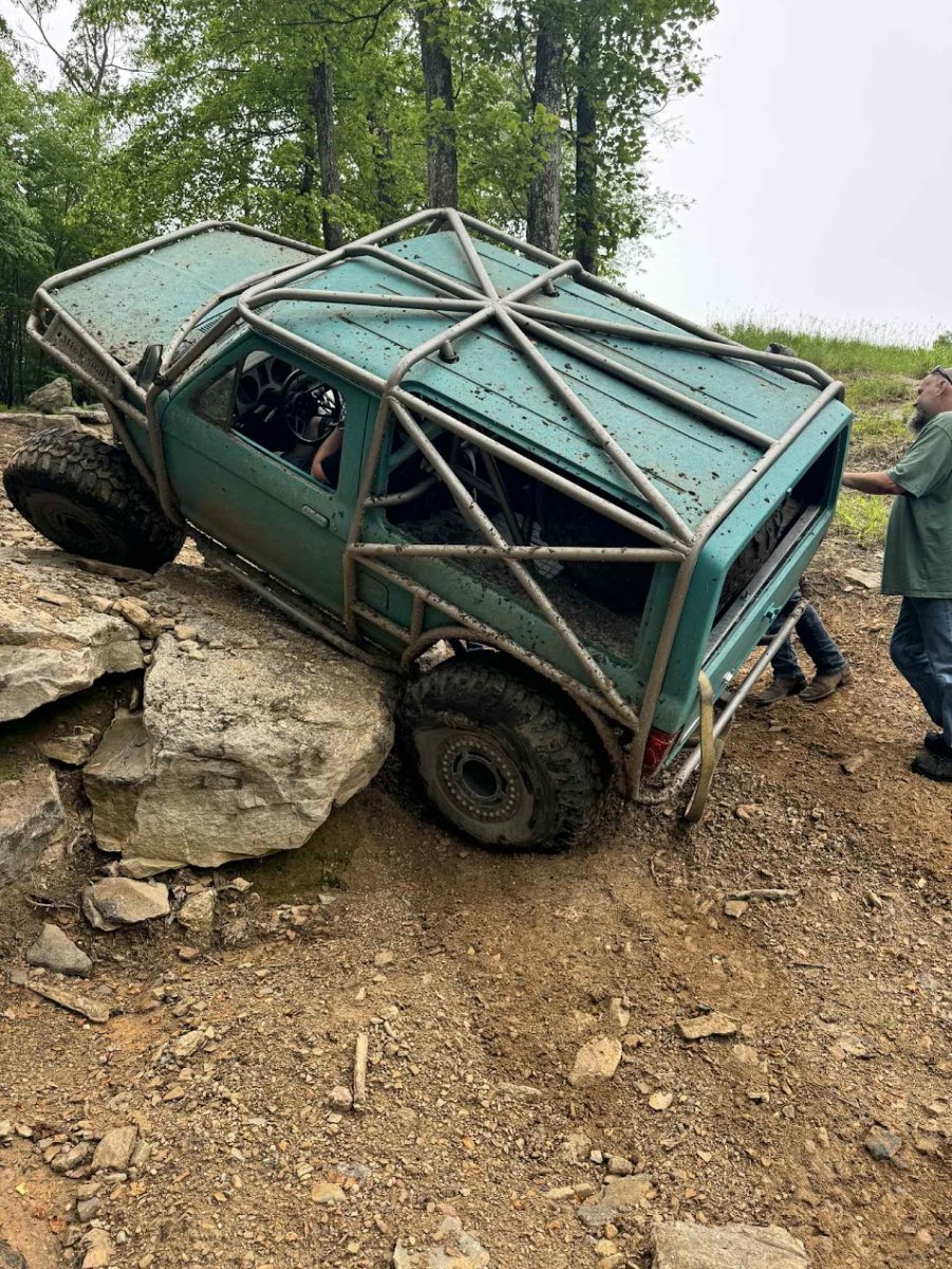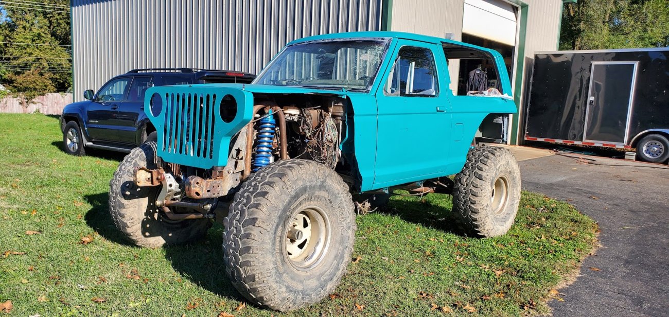 Dugan of MidKnight Fabrications had a modified Ford Ranger, but the body was trashed from a few rollovers and tree encounters. He found an old Bronco II and decided to transfer all of the good parts from the Ranger to the Bronco II.