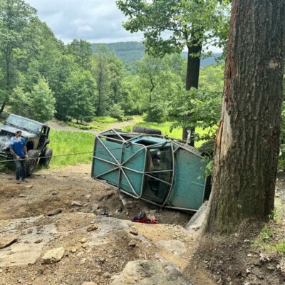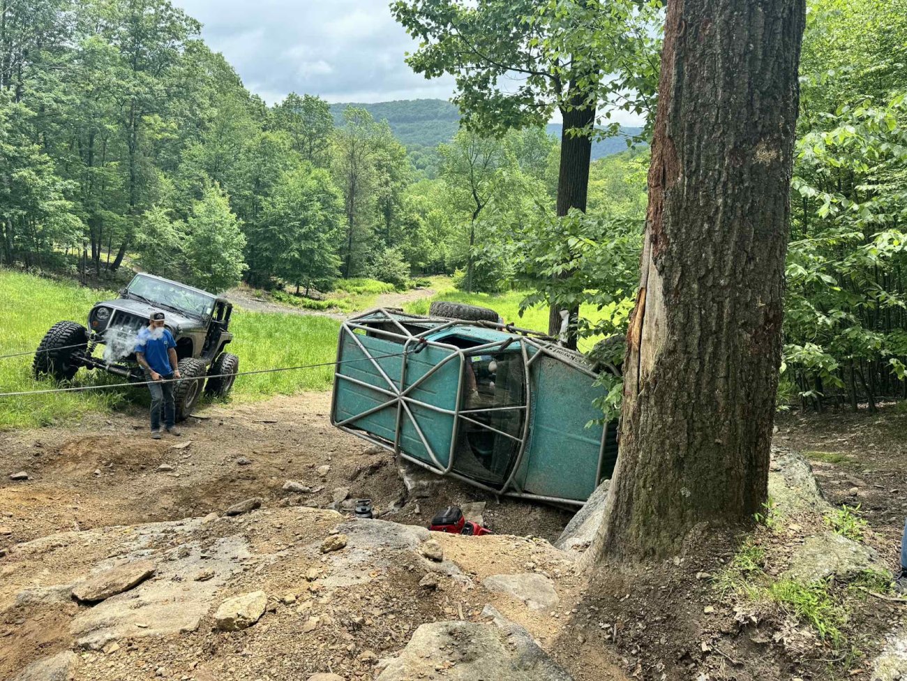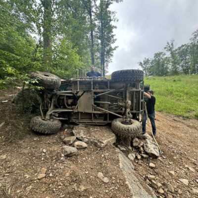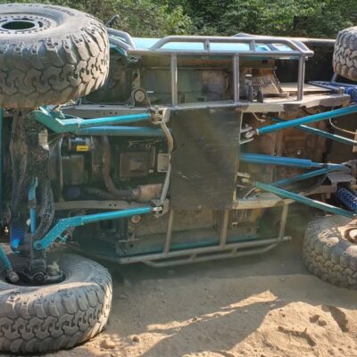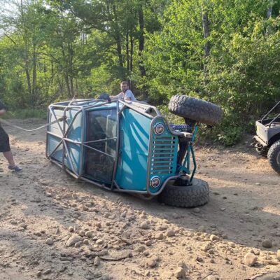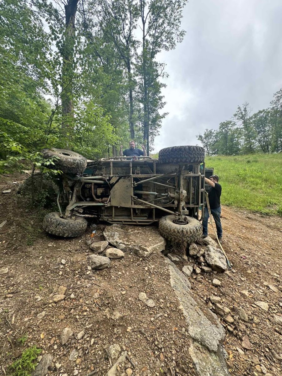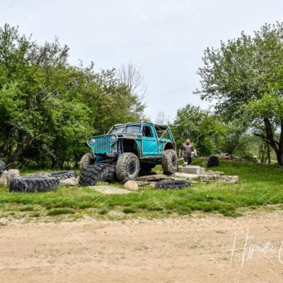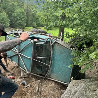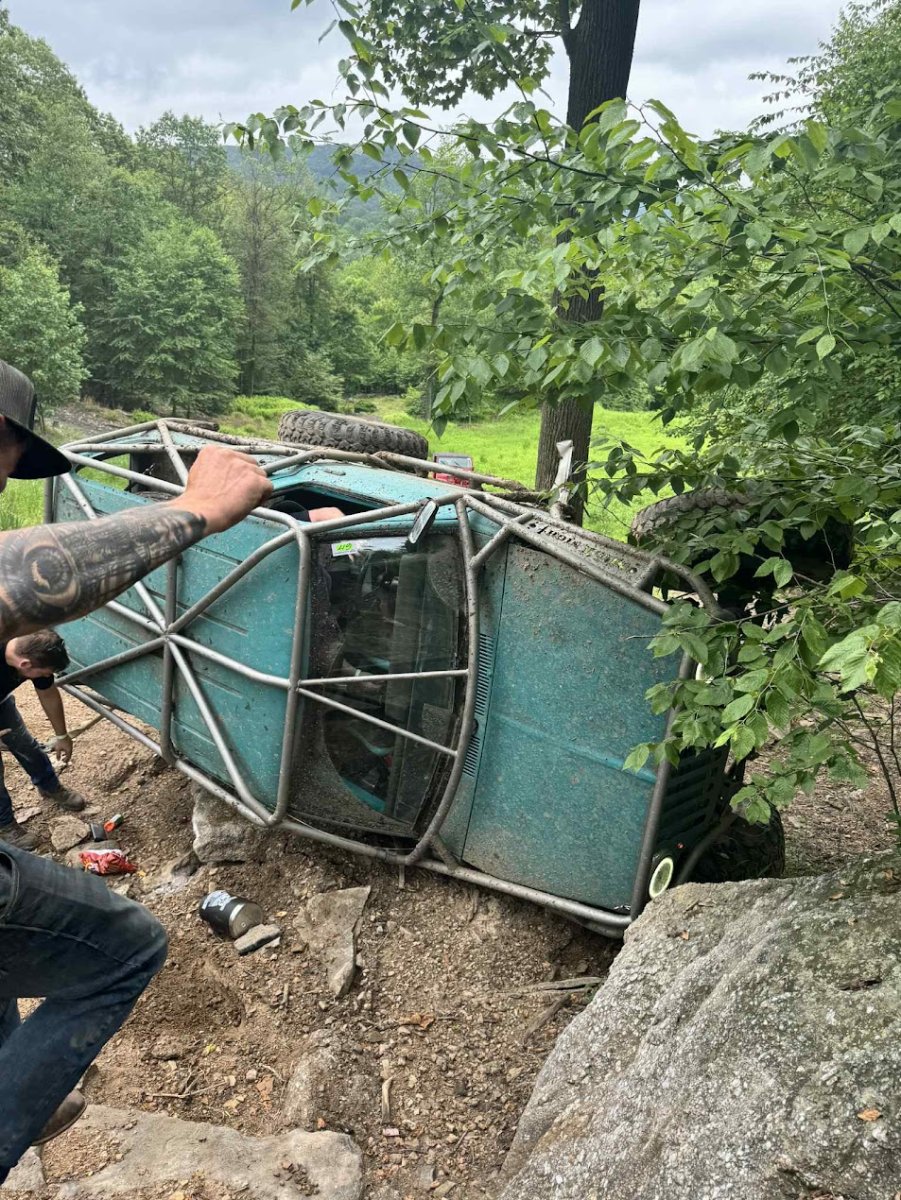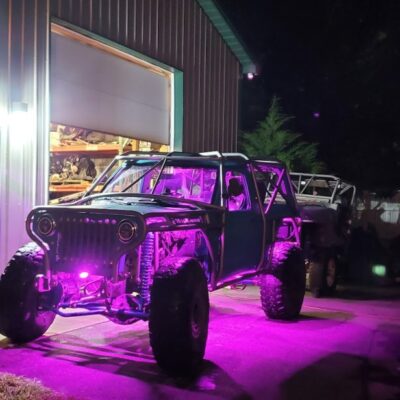 Here’s something you’ve probably never seen before. It looks like some kind of Willys coming towards you, but it’s a little confusing because you’re counting the grill slots, but there aren’t any turn signals under the headlights, or the holes to mount them in. Looking closer it appears to have a Ford TTB front suspension. Is that a Dana 44 TTB? Those look like 39-inch IROKS that you would find on a rock crawler. Why doesn’t this thing have a Dana 60 solid front axle?