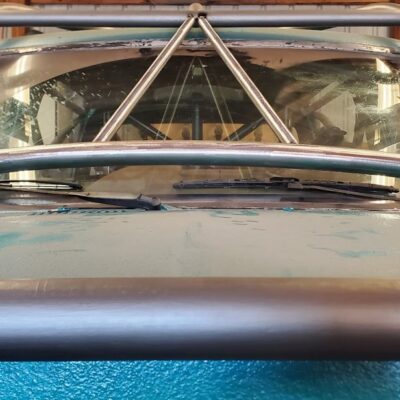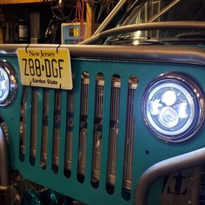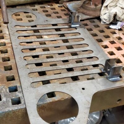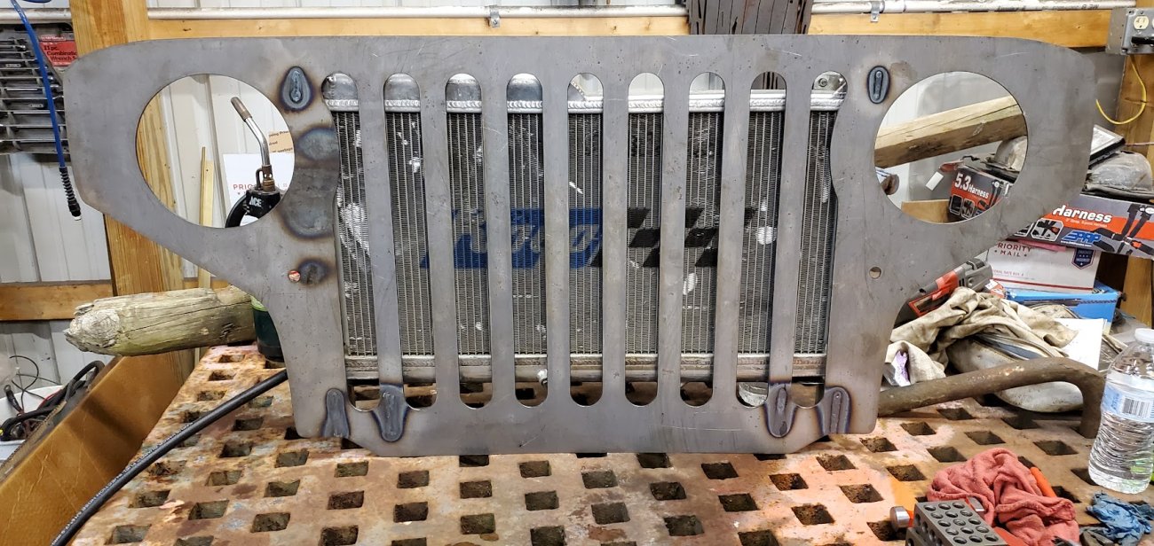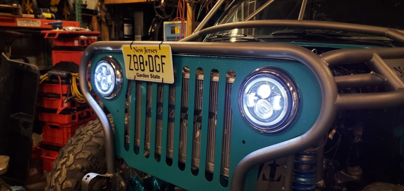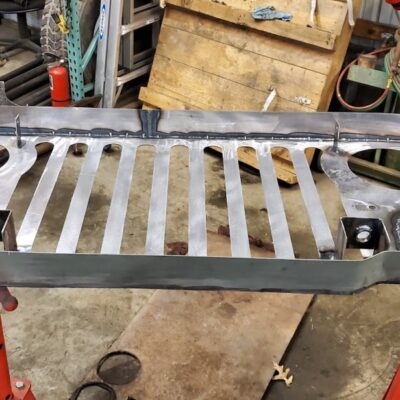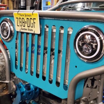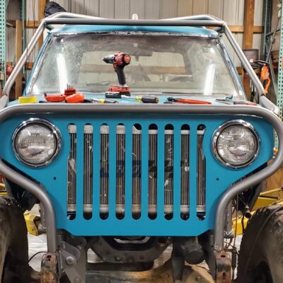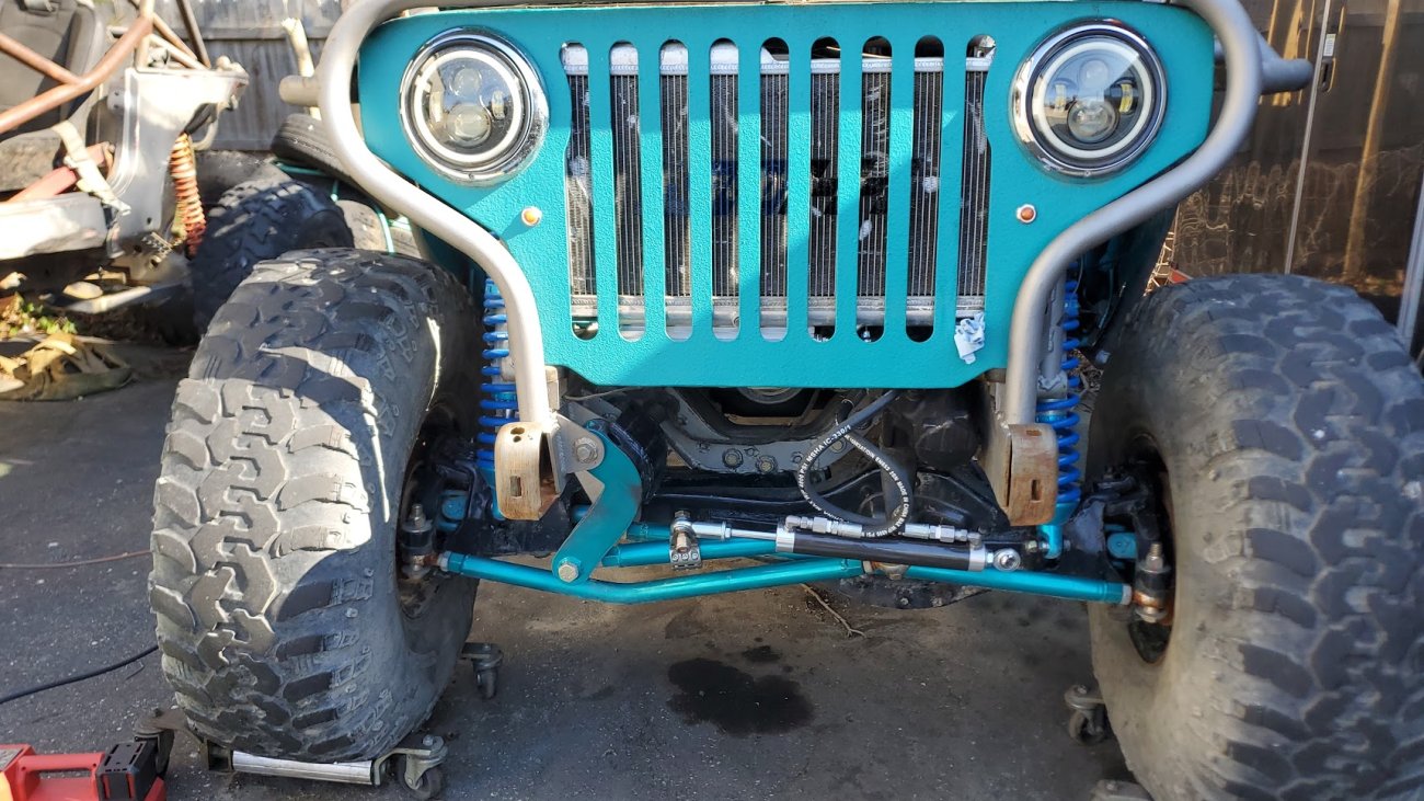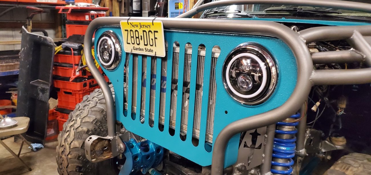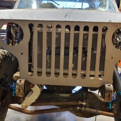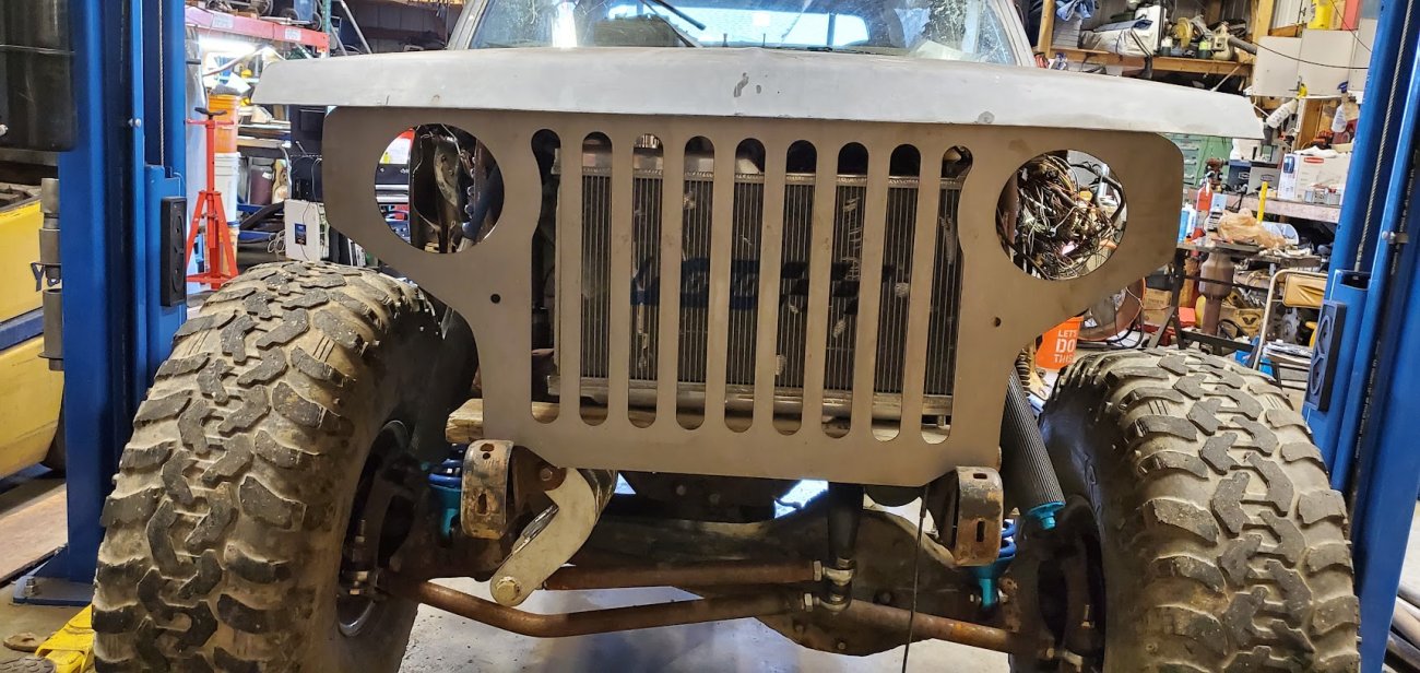 Front custom made CJ3A/CJ2A Grill with 2 slots added to fit the Ford mantra. Front turn signals perform flash back just like the head lights.