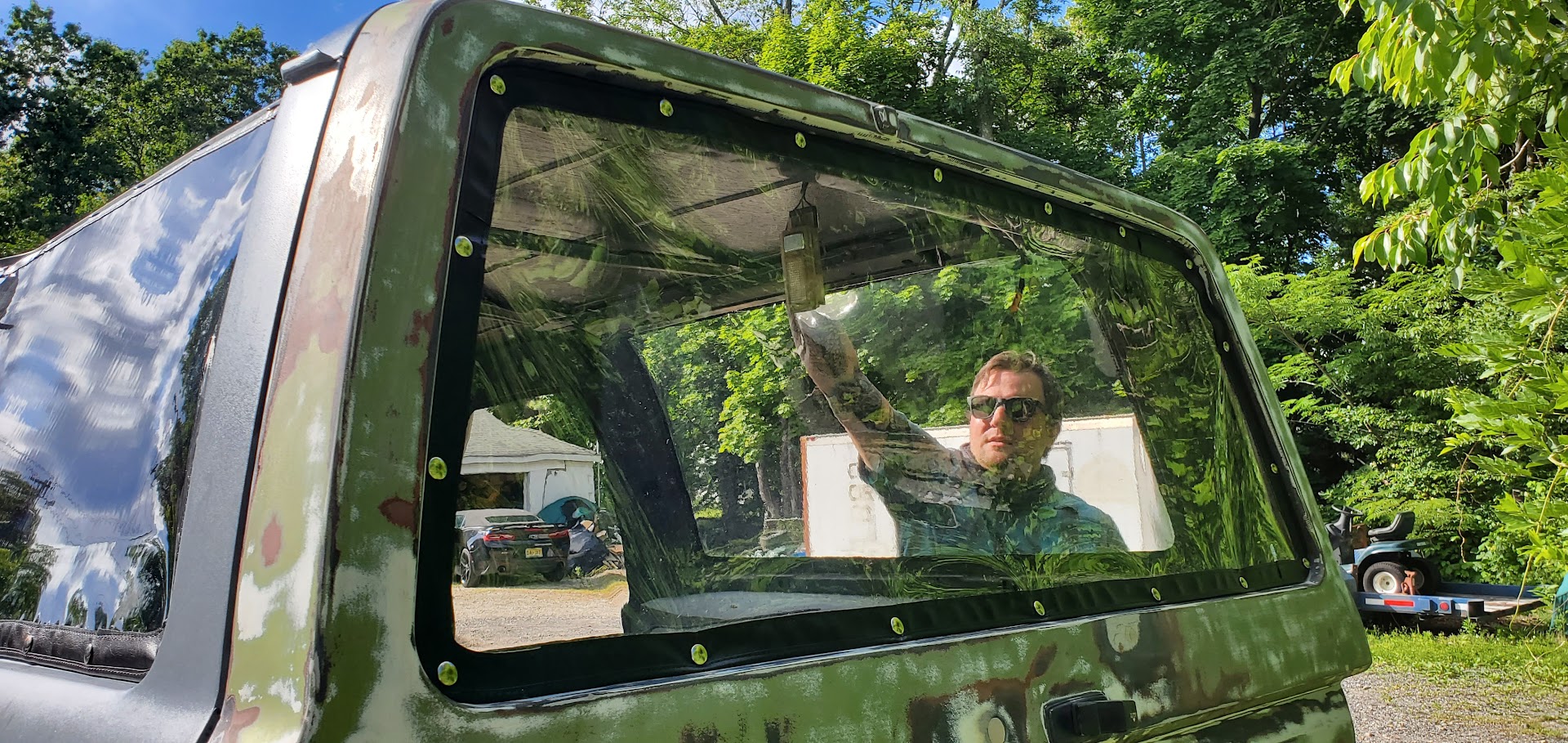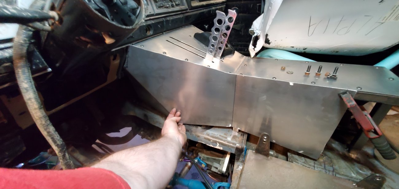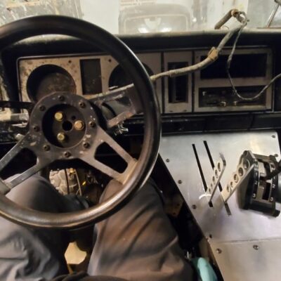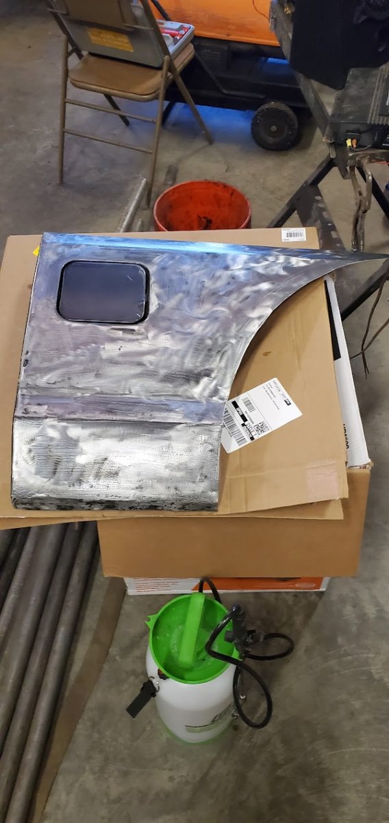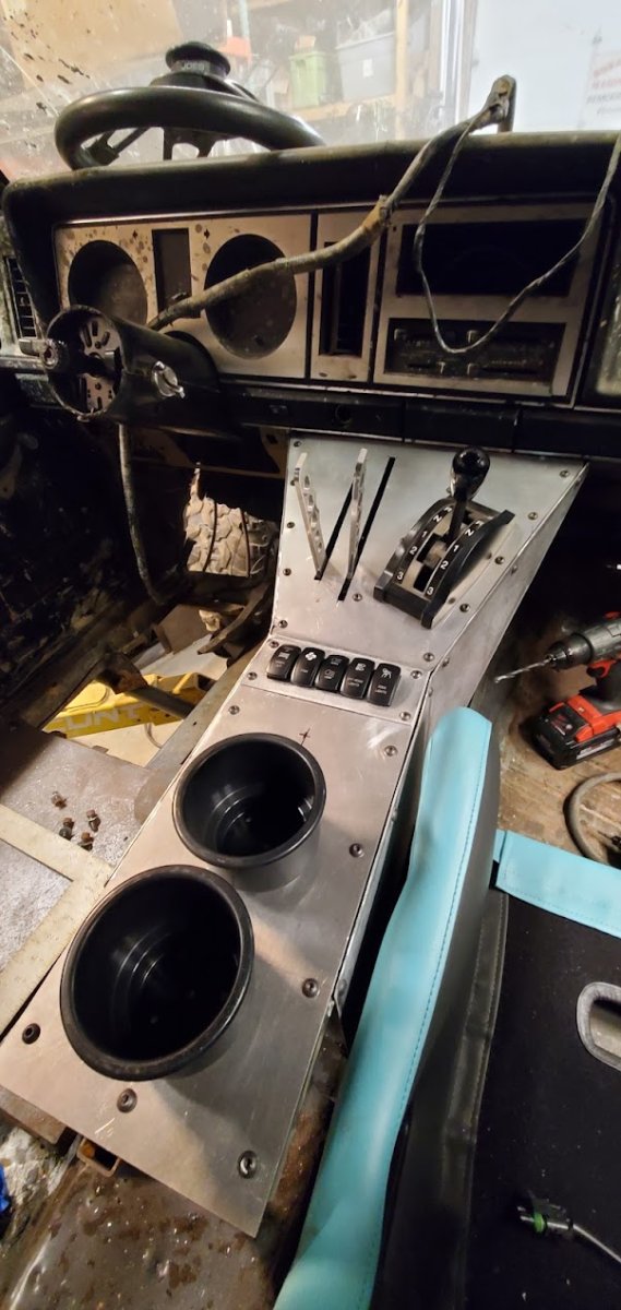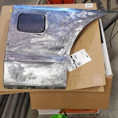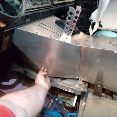 With the rear suspension being stretched 8-inches rearwards, an old Ford Ranger bed was used to make the panels to fill the wide space between the rear tires and the doors.