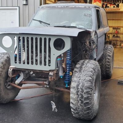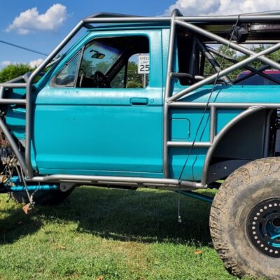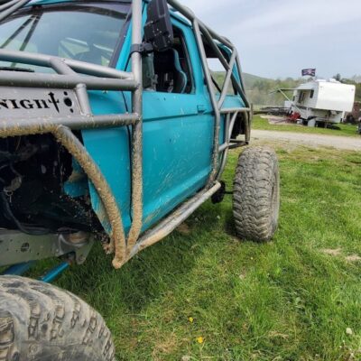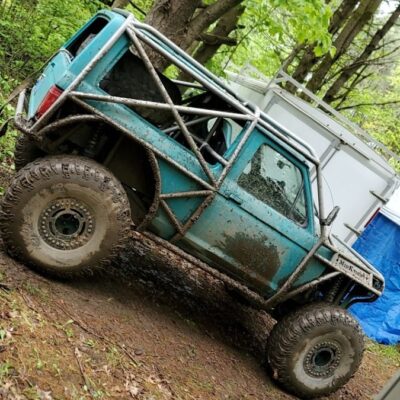 As you walk around to the side it becomes even more confusing. It’s not a Willy’s, it’s not a Jeep, it’s not an International Scout, and it’s not a Ford Bronco. And then it hits you; that’s a Ford Bronco II body. Now you just stand there for a minute taking in what it is you’re seeing. This is a Ford Bronco II with an exo cage and a Willys inspired grill. Oh, and that front axle, it’s not a Dana 44 TTB, it’s a Dana 35 TTB found in the 1990-1997 Ford Ranger and 1991-1994 Ford Explorer.