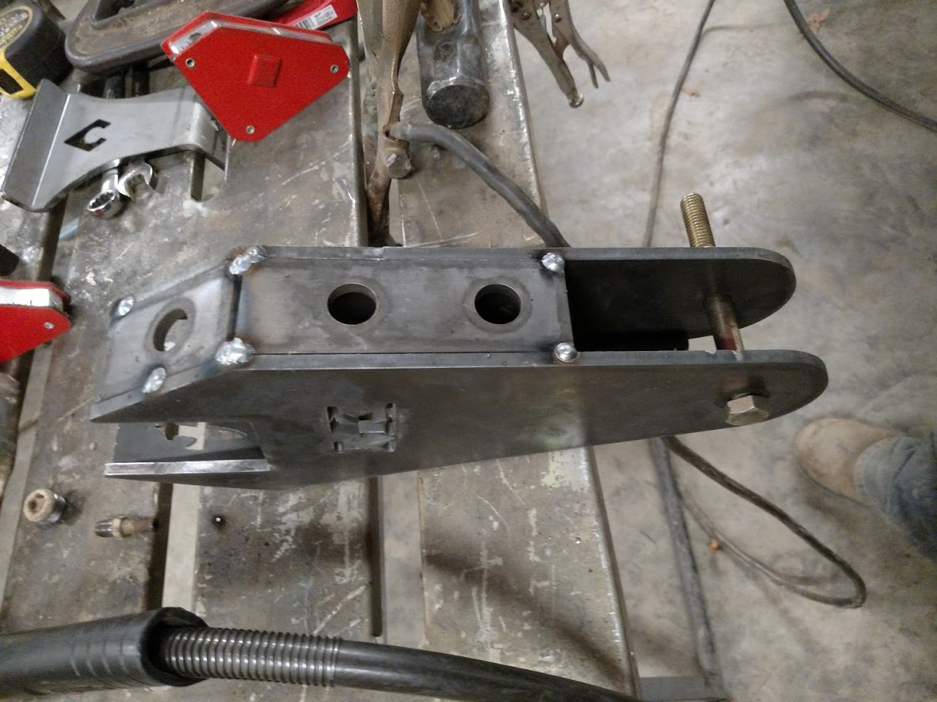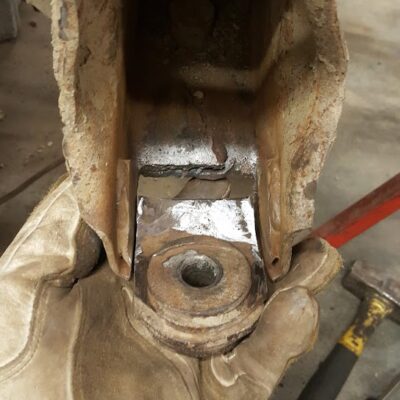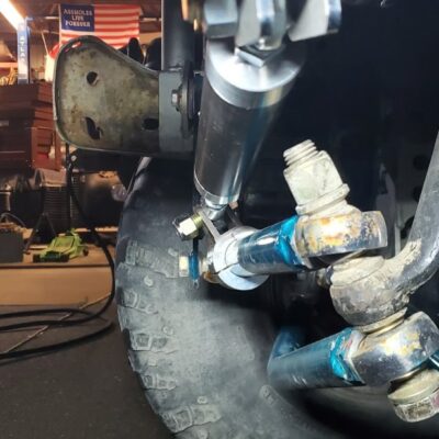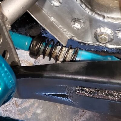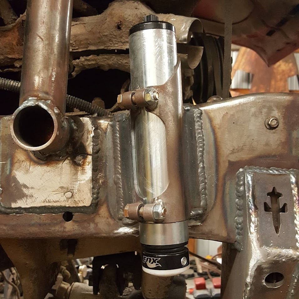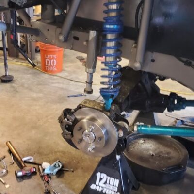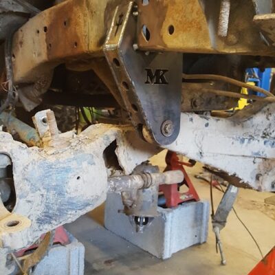 Dugan didn’t just swap the parts from the Ranger onto the Bronco II. He made a lot of upgrades as he went. Below you can see that he designed and built his very own suspension brackets for the front axle