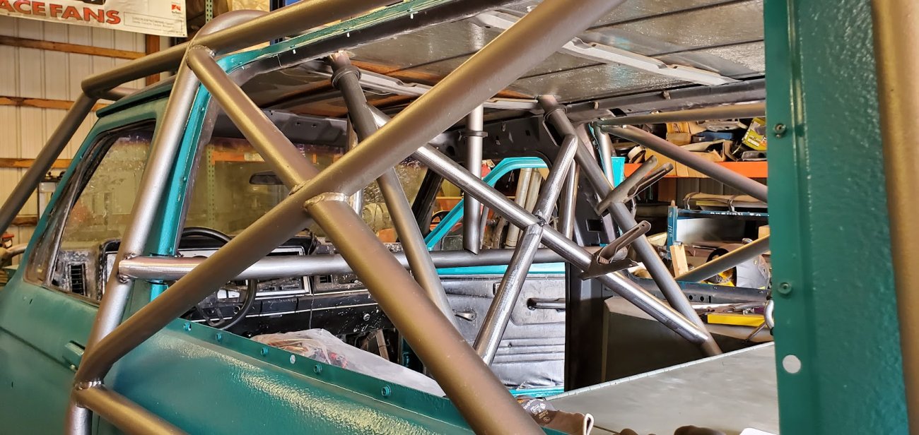 The rear suspension has been replaced with a custom 4-link and King 2.5-inch 14-inch coilovers with Fox bump stops.