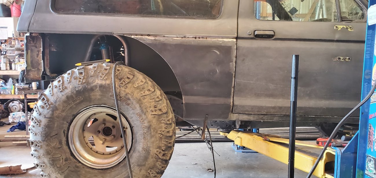 This Bronco II went from the stock 94-inch wheelbase to a 108.5-inch wheelbase.