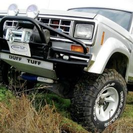 The stock Dana 28 and Ford 7.5-inch axles were replaced with larger Dana 35 and Ford 8.8 axles. ARB air lockers and Yukon 4.56 gears ensure that the BFGoodrich 32-inch KTM’s get traction and keep the Bronco II crawling forward. A Skyjacker 4-inch lift with extended radius arms make room for the tires.