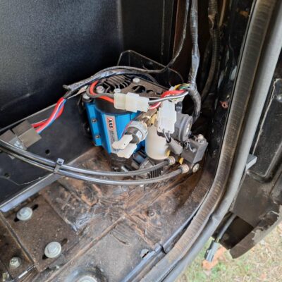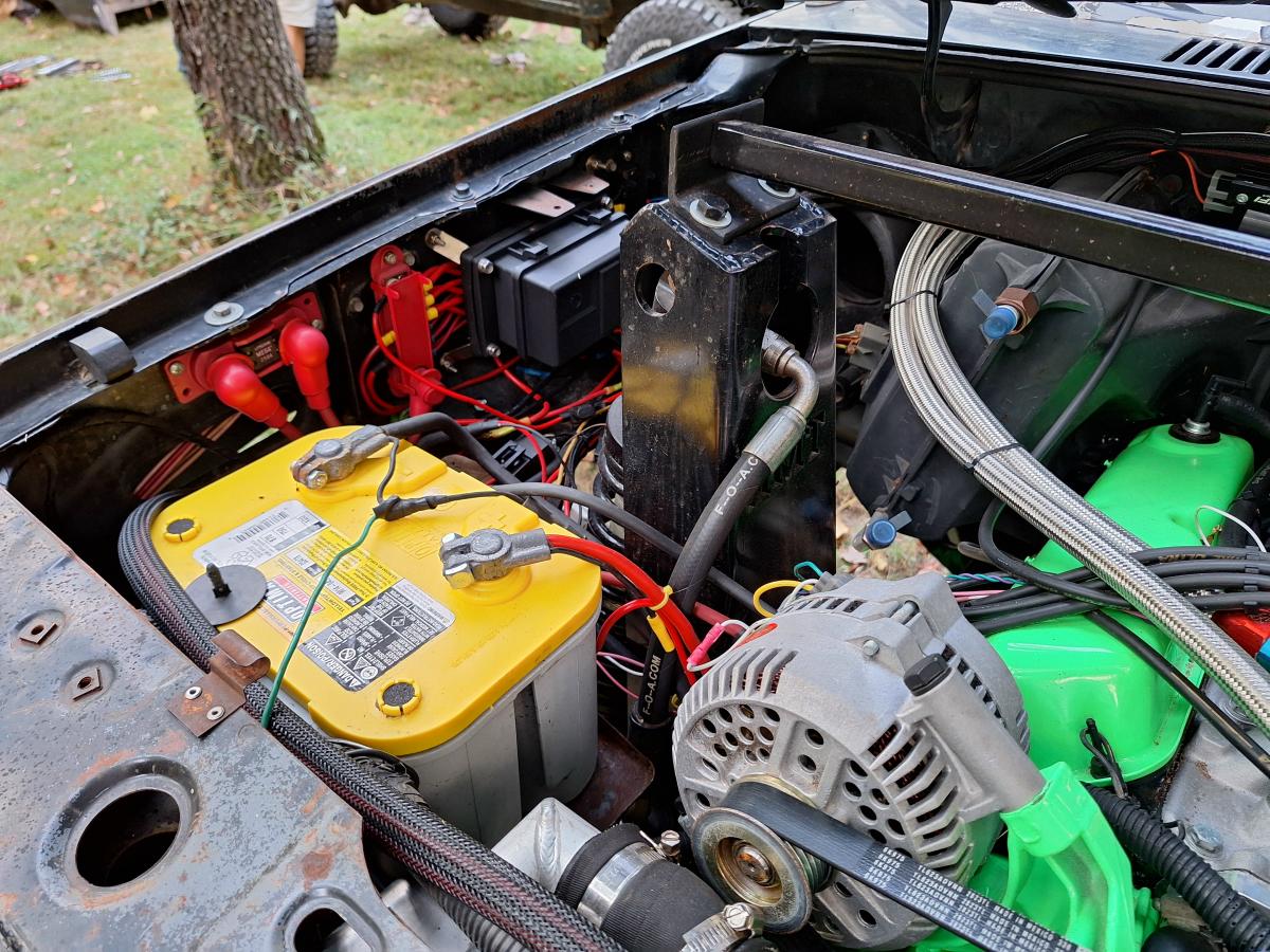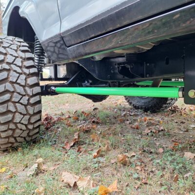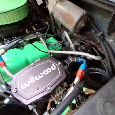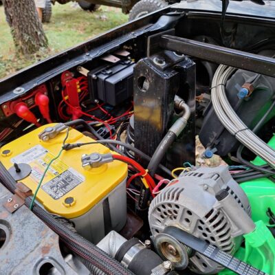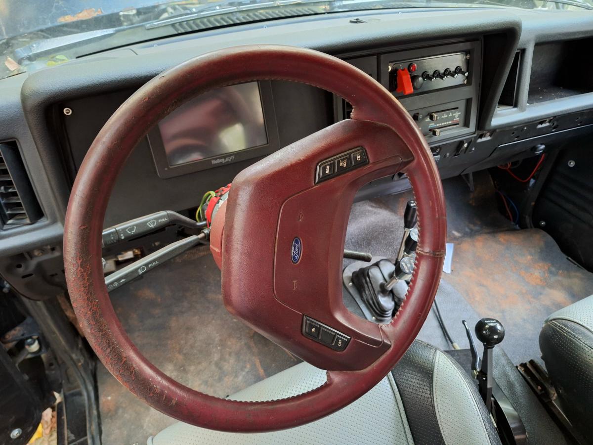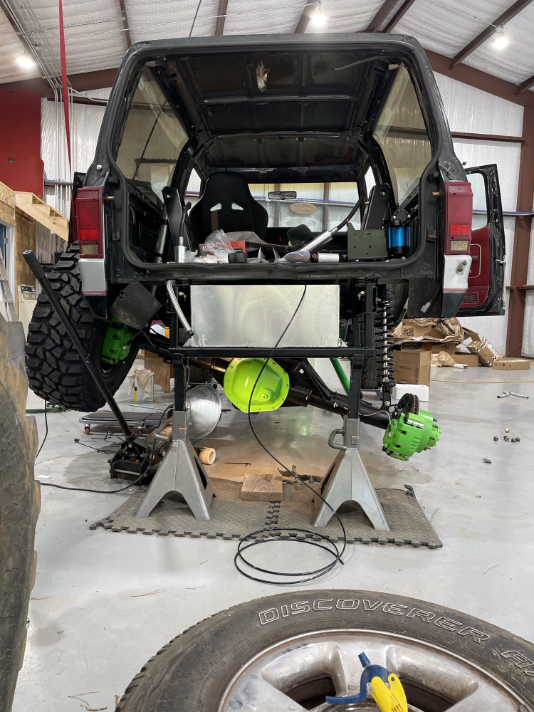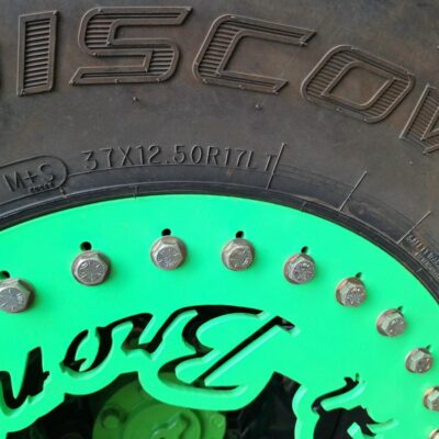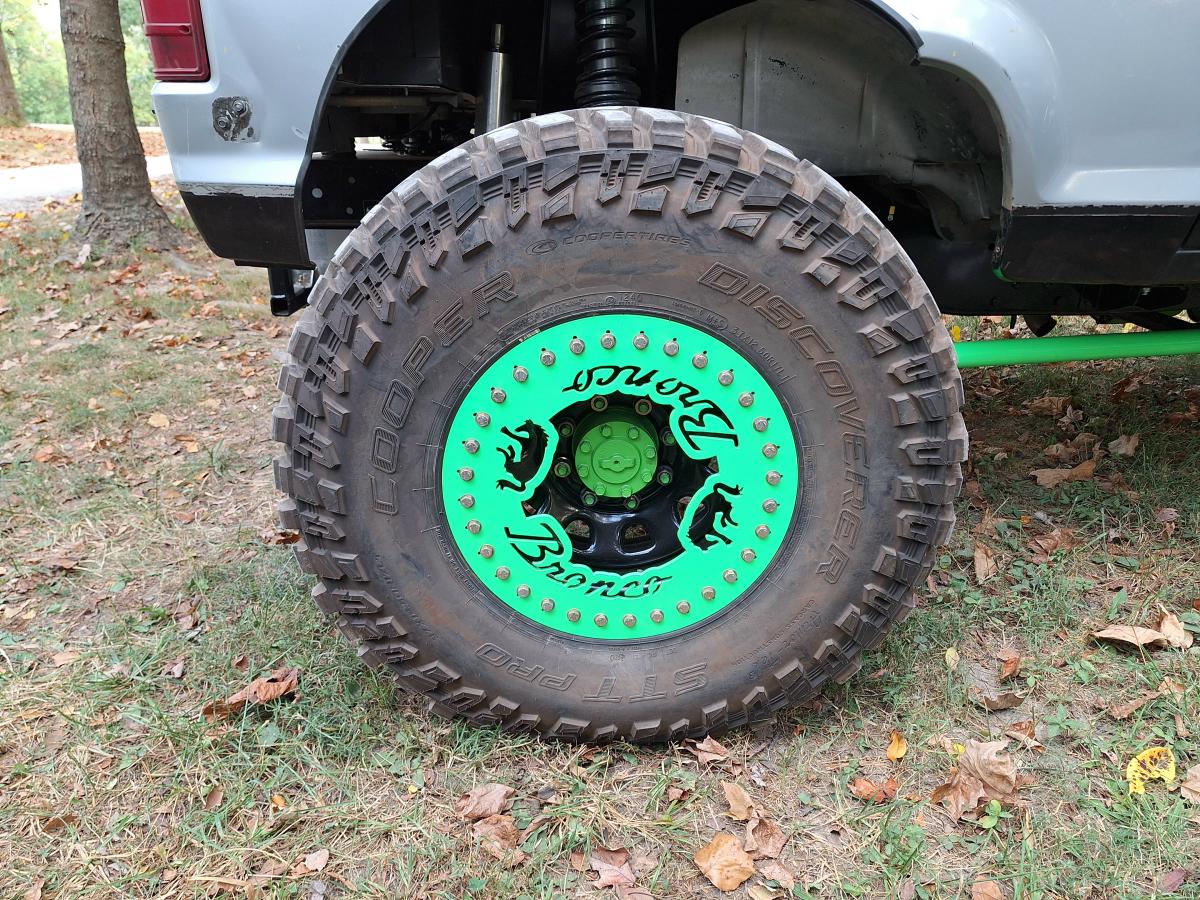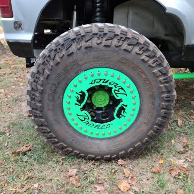 The Bronco II rides on 37×12.50×17 Cooper Discoverer STT PRO tires on beadlock wheels. Braking is accomplished with a Hydroboost out of a mid-90’s Ford truck and a Wilwood master cylinder.