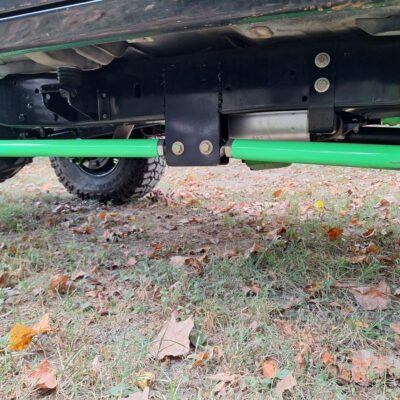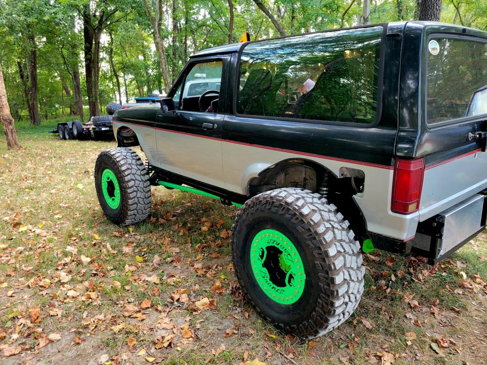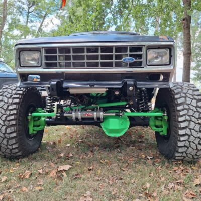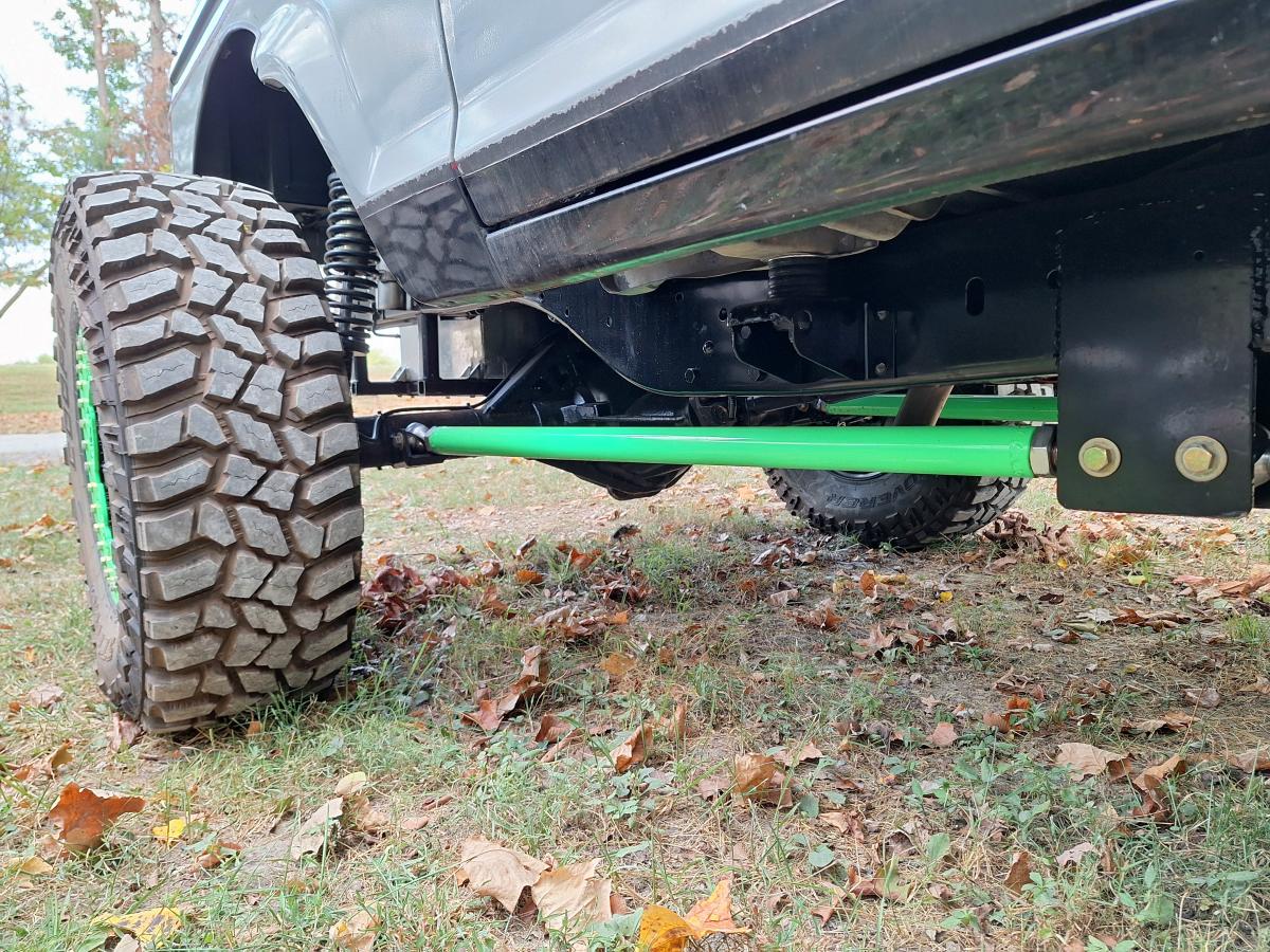 A RuffStuff Specialties 4-link kit and 14-inch coilovers mount a 2006 Dodge 11.5-Inch rear axle 4-inches back from where the stock axle was. The axle has an ARB air locker but still has the factory 3.73 Gears. That may seem like a mild gear ratio but remember that this Bronco II has a 302 V8 and doubler transfer case.