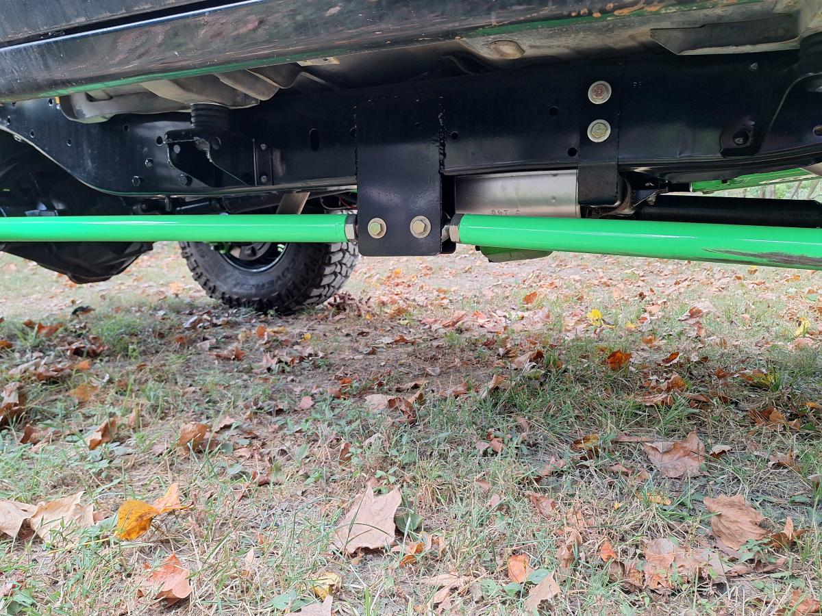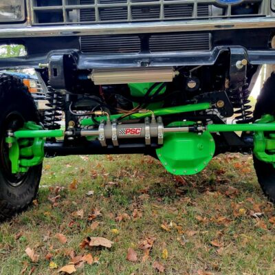 A RuffStuff Specialties 3-link kit and 14-inch coilovers mount the 2006 Dodge 9.25-Inch front axle 8-inches forward of where the front axle was. The front axle also has an ARB air locker and 3.73 gears. Steering is accomplished thanks to a PSC full hydraulic setup.